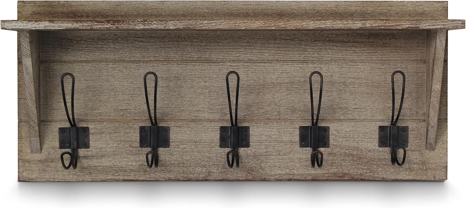 - Versatile Shelf Design: This coat rack also serves as a floating shelf, providing additional storage space for your home decor or keys. It doubles as rustic farmhouse wall decor with a unique wood tone.