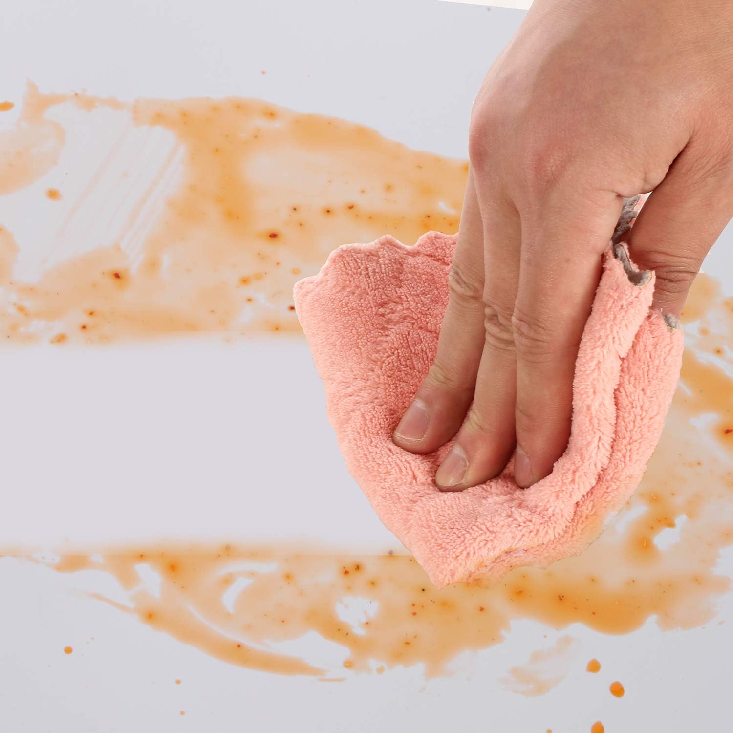 - HIGH QUALITY MATERIAL - Our dish rags are made of high quality non-abrasive and extra soft coral velvet thickening material, which is not easy to lint and fade, soft and not hurting hands, natural and without any chemicals. These dish cloths are not only suitable for kitchen cleaning, but also suitable for cleaning home furniture, car, window, electric appliance etc. It’s so easy to remove dust, dirt, stain, grease, fingerprints.