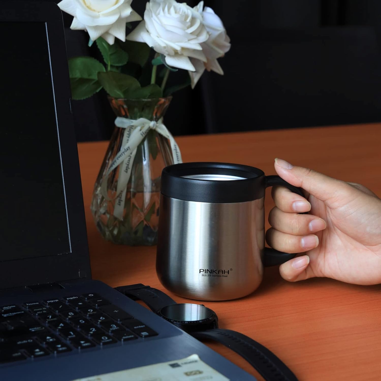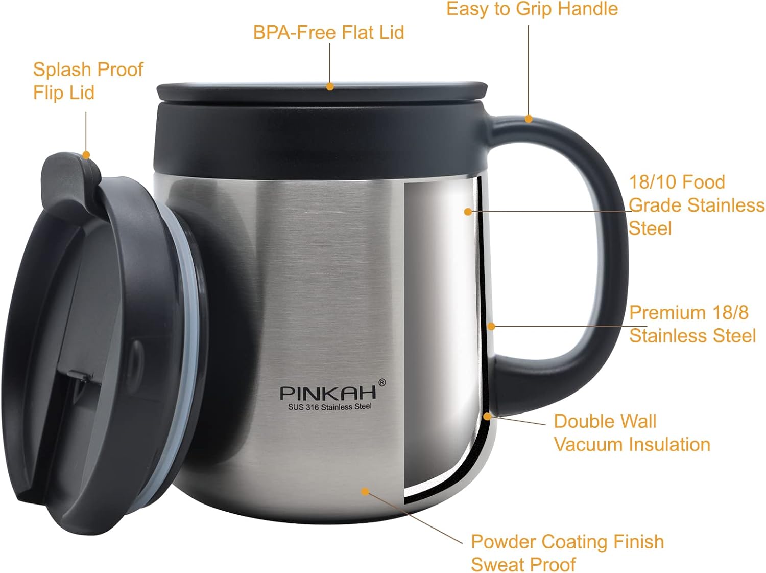 - VACUUM INSULATED COFFEE MUG with HANDLE: It is with double walled vacuum insulation technology, keeping your favorite beverages hot for up to 6 hours and cold for up to 8 Hours.