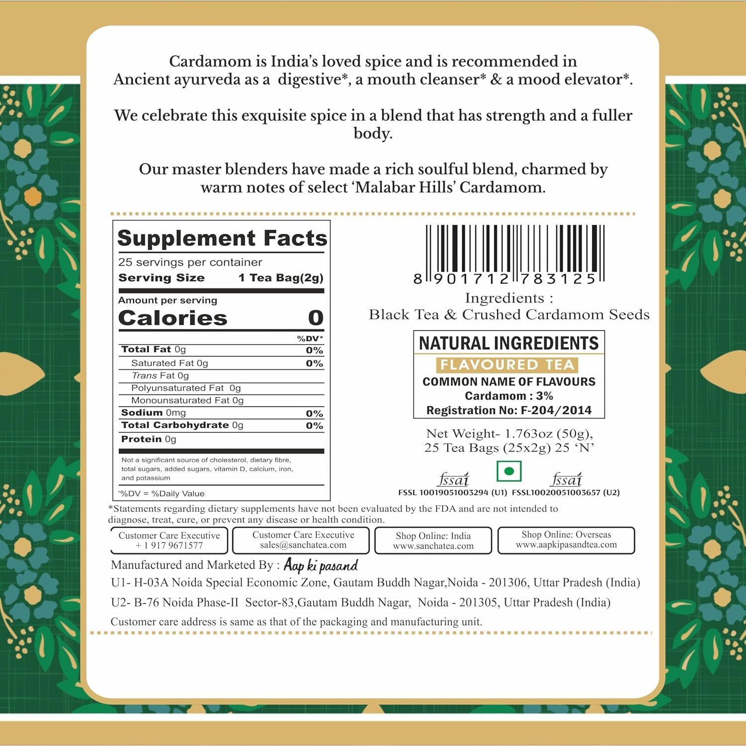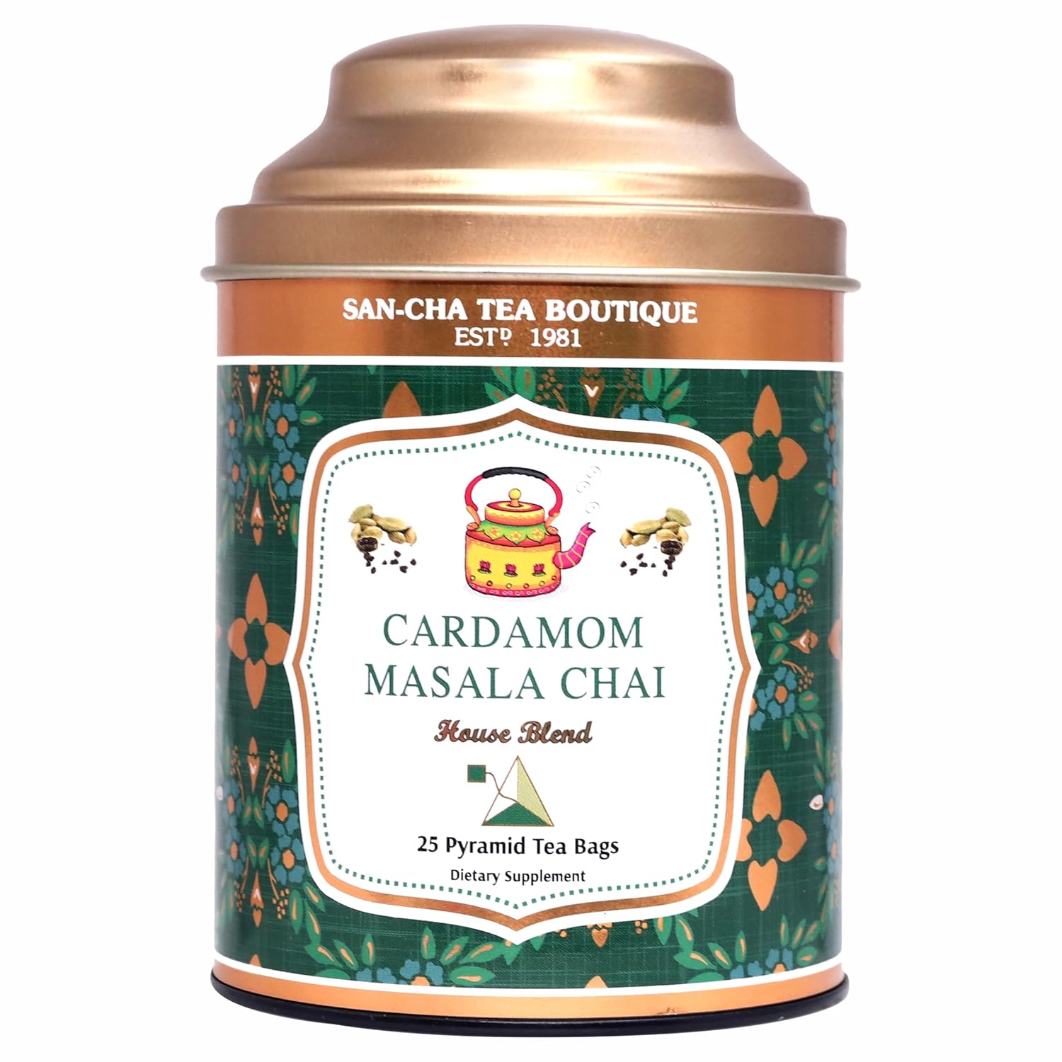 Sancha Tea Boutique, Cardamom Masala Chai, 25 Pyramid Tea Bags, Premium Assam Black Tea with Real Cardamom, Authentic Spiced Chai Latte, No Artificial Flavours