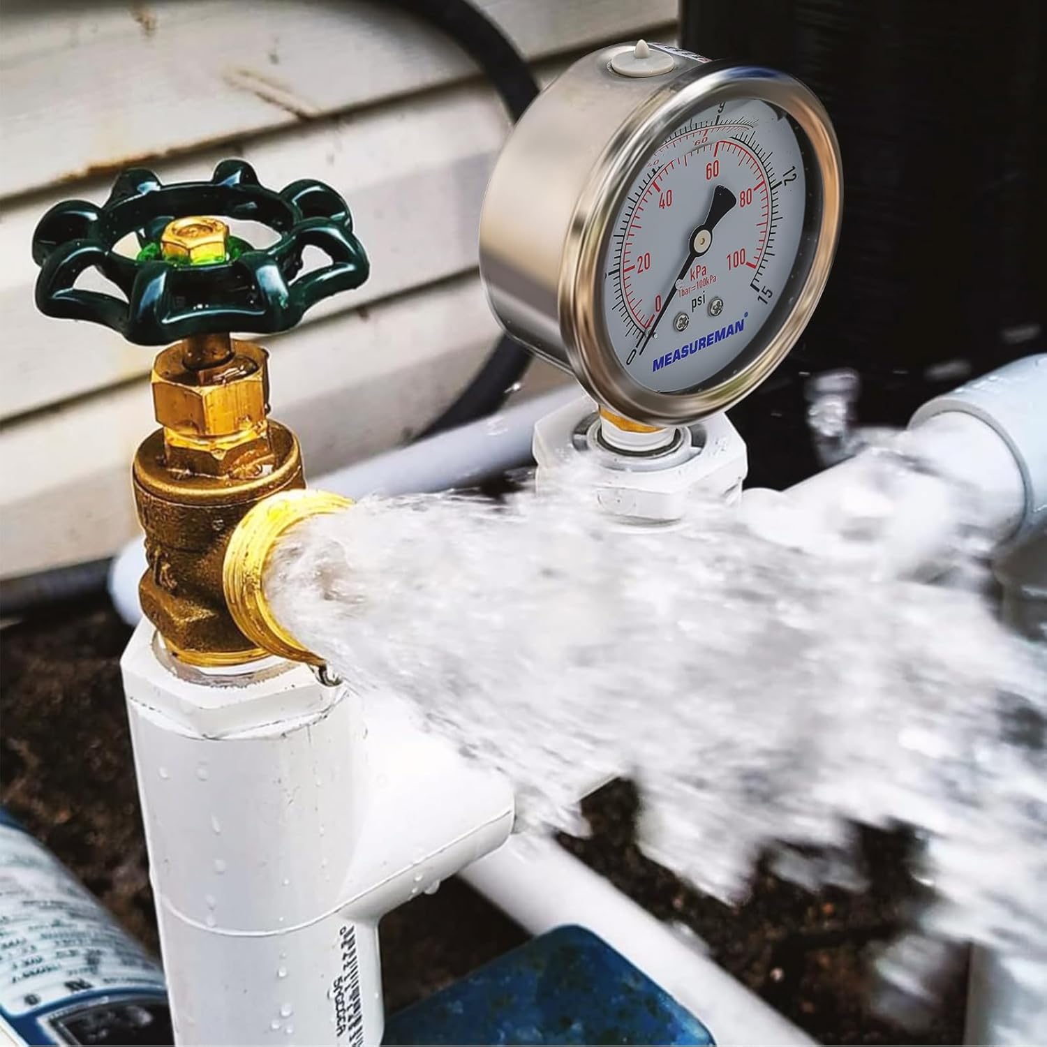 MEASUREMAN 2-1/2inch Dial Size, Glycerin Filled Pressure Gauge, 0-15psi/100kpa, 304 Stainless Steel Case, 1/4inch NPT Lower Mount