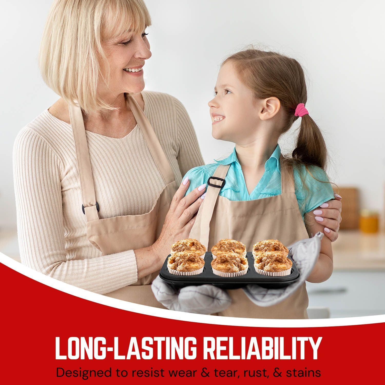 Flexzion Muffin Tray Cupcake Baking Pan 2 Pack, 6-Cup Nonstick Carbon Steel Muffin Tins Non-Stick Cupcake Tin Bakeware Accessories for Baking Cupcakes Muffin Brownies Snacks, Easy Clean, Fridge Safe