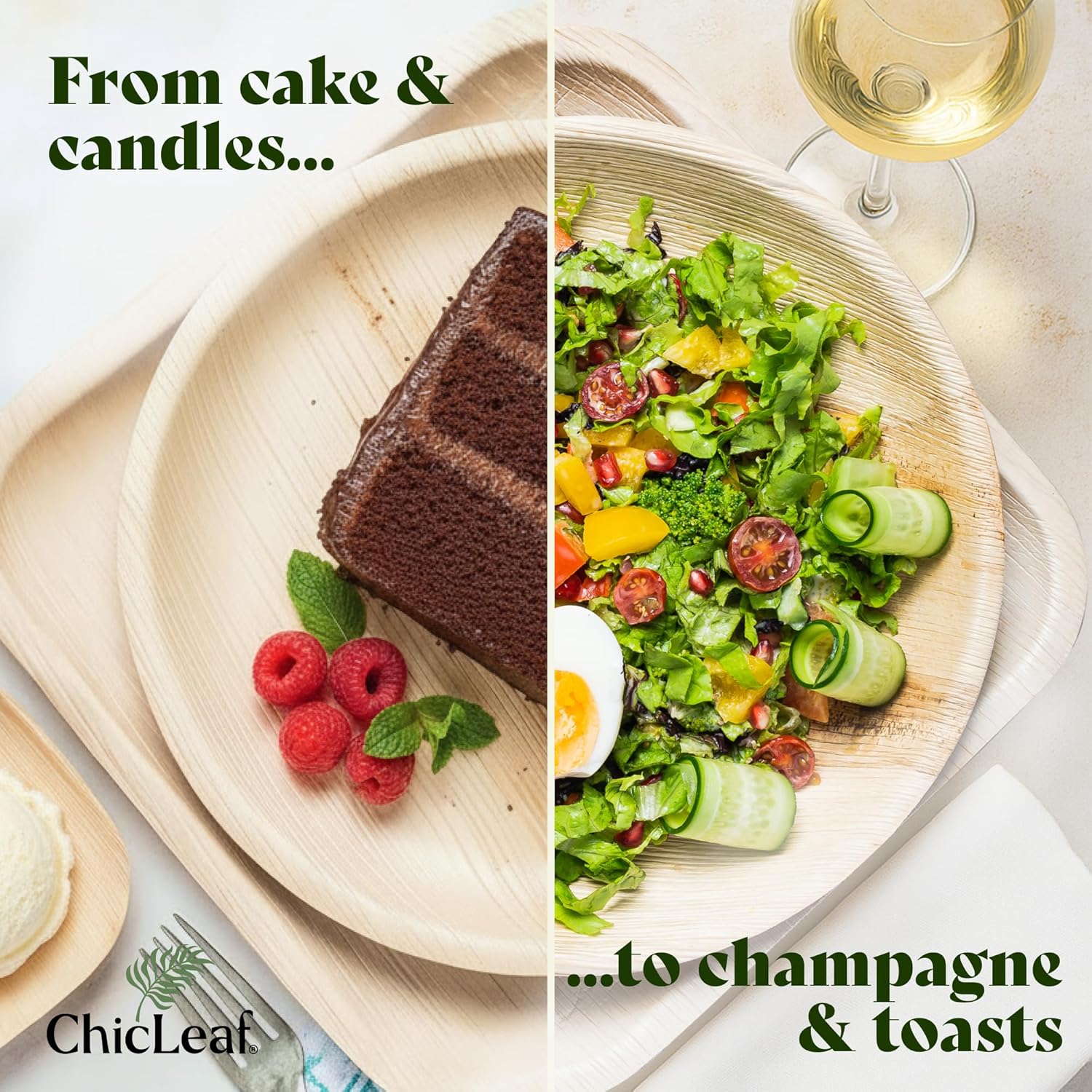 - Eco-Friendly Elegance: Chic Leaf's bamboo-like disposable plates seamlessly blend style with eco-conscious values, offering a refined alternative to traditional party plates. These palm leaf plates elevate any event with their sophisticated design and biodegradable nature