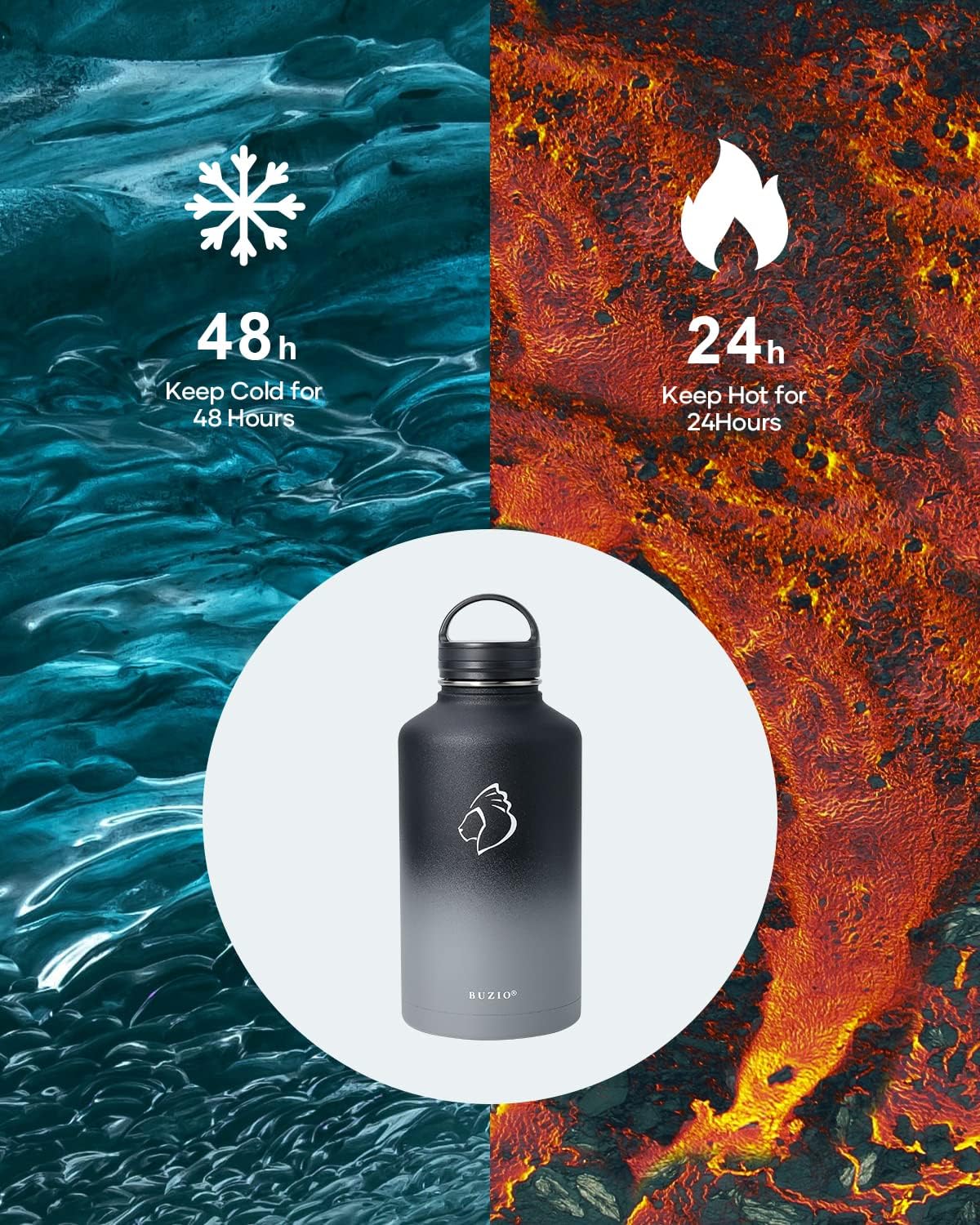 - Super Deal Combo: Buy 64oz insulated water bottle, get 7 accessories, a worry-free lifetime warranty, and friendly customer service. BUZIO water bottle with a delicate packaging box works as a perfect gift for your loved ones.