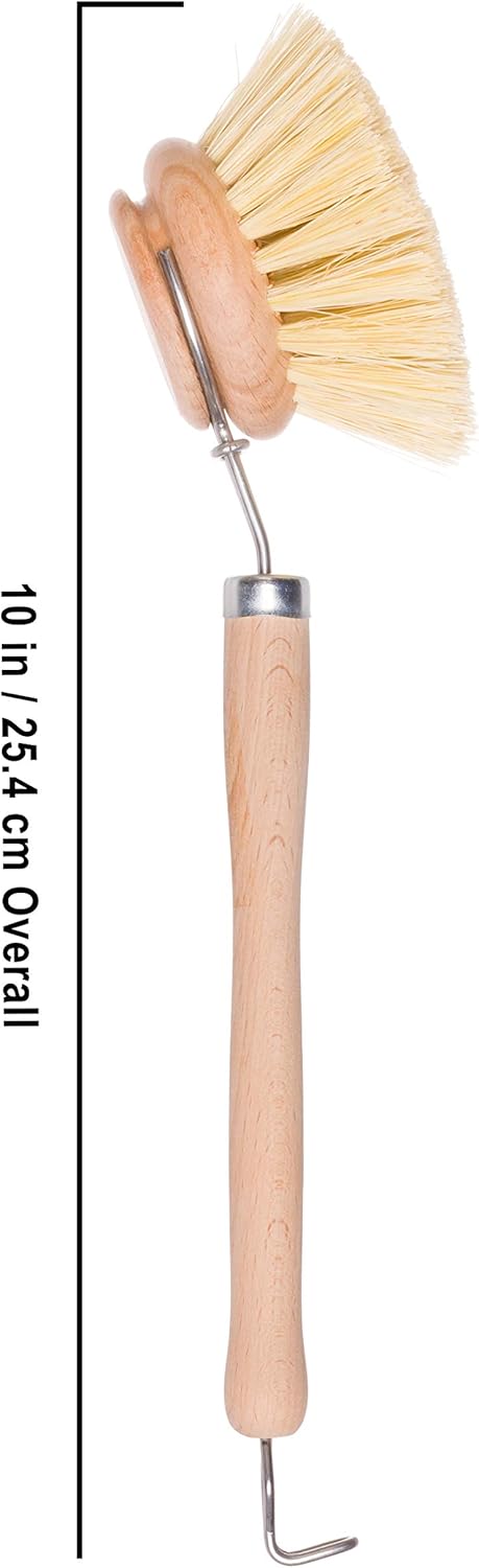 - Ergonomic And Durable Handle: This Redecker dish brush with a hooked handle features a 7-1/2 inch beechwood handle providing a comfortable grip while ensuring durability and longevity