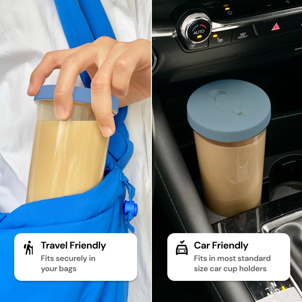 - â ăTRAVEL FRIENDLYăIt doesn't matter if you are drinking iced coffee or boiling tea, our cork band sleeve will save the temperature of the drink only for your tongue. The reusable bubble tea cup is the perfect container for any outdoor or indoor travelling. Our telescopic thick straw makes this cup the ideal travel reusable boba tumbler as you can simply pop the straw back into the cup after drinking.