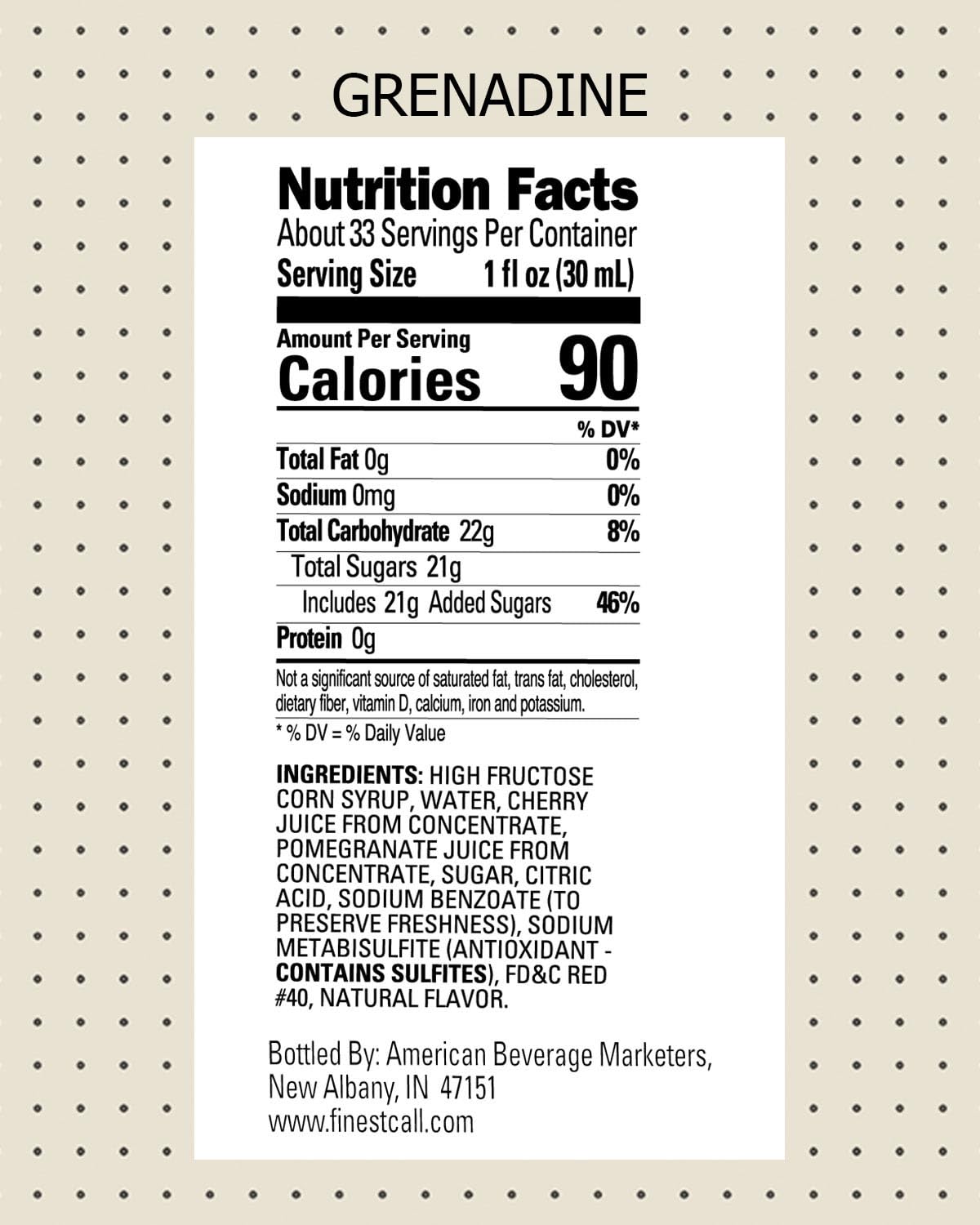 Finest Call Premium Grenadine Syrup Drink Mix, 1 Liter Bottle (33.8 Fl Oz)