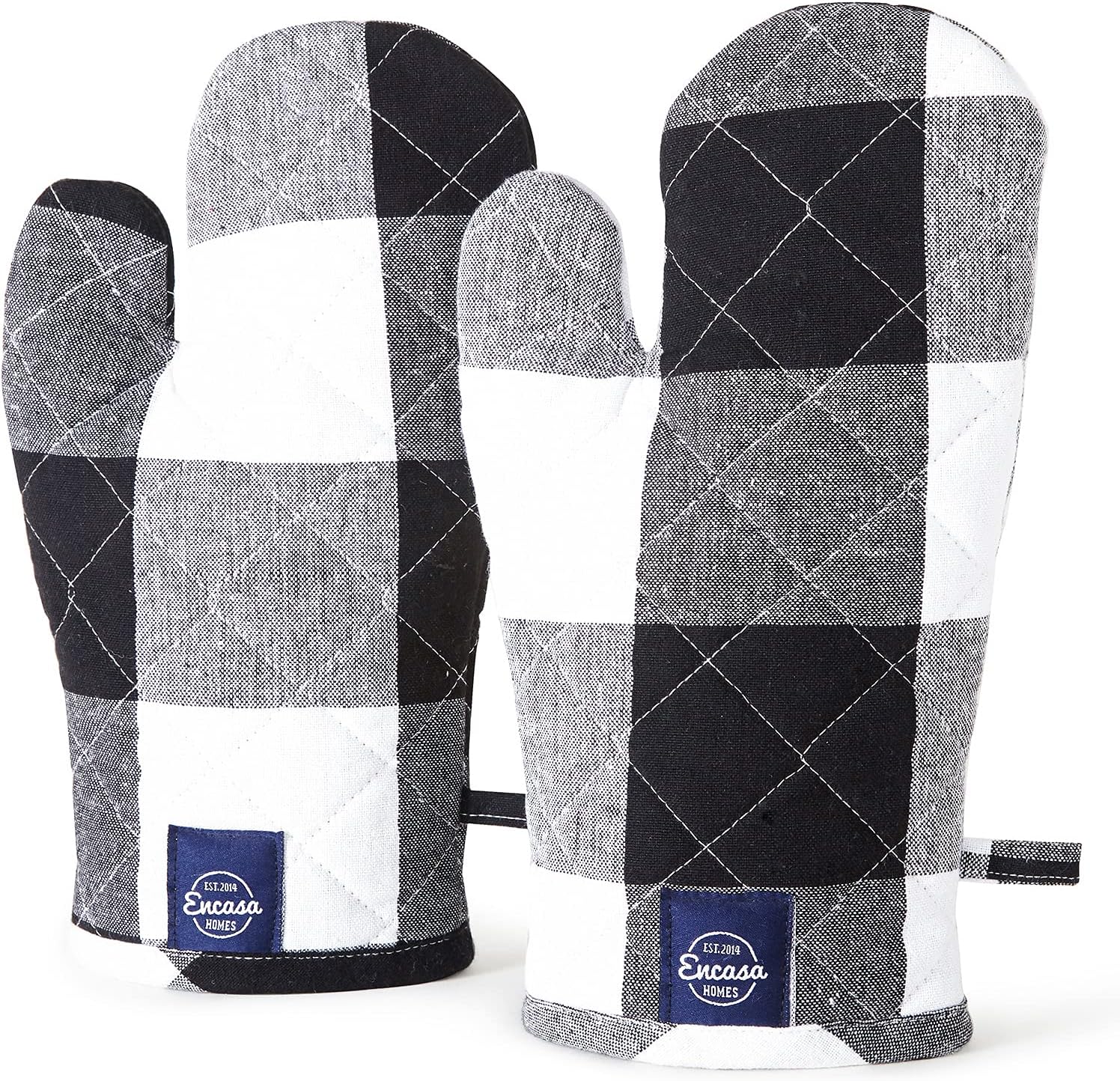 Encasa XO Long 12"x7" Oven Microwave Hand Gloves Mitts (2 pc Set) for Kitchen Cooking & Baking - Heat Resistant, Thick & Safe, Protection of Hands from Hot Utensils - Buffalo Black Checks