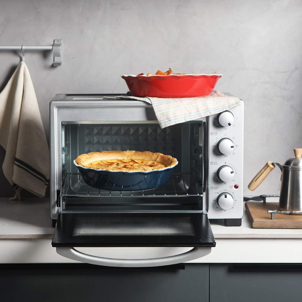 Sweejar Ceramic Pie Pan, 10 Inches Round Baking Dish for Dinner, Non-Stick Plate With Soft Wave Edge for Apple, Pumpkin, Pot Pies (Navy)