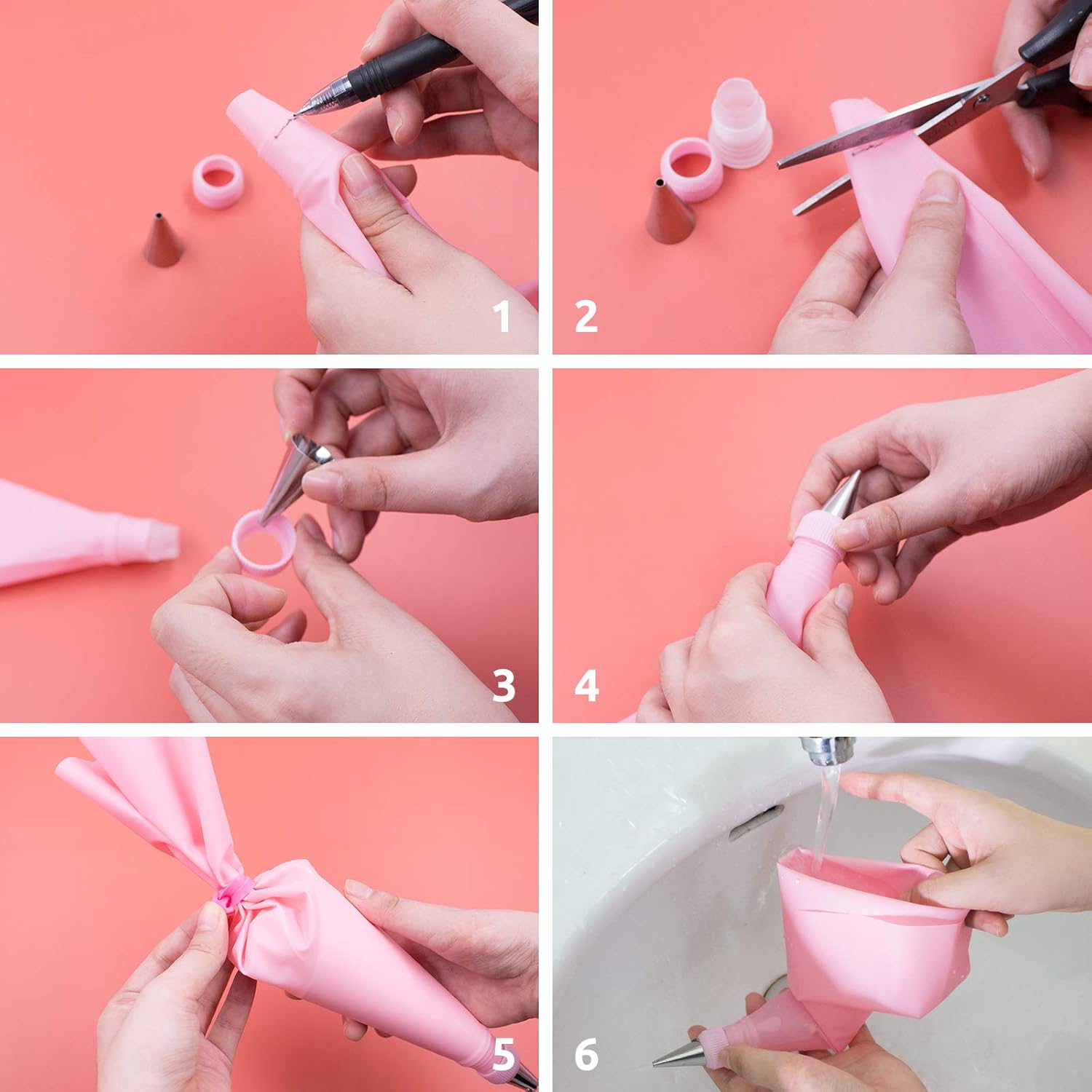 - 【 Durable & Reusable 】-The silicone piping bags are washable. And the durable silicone pastry bags can withstand powerful extrusionuse and multi-washing
