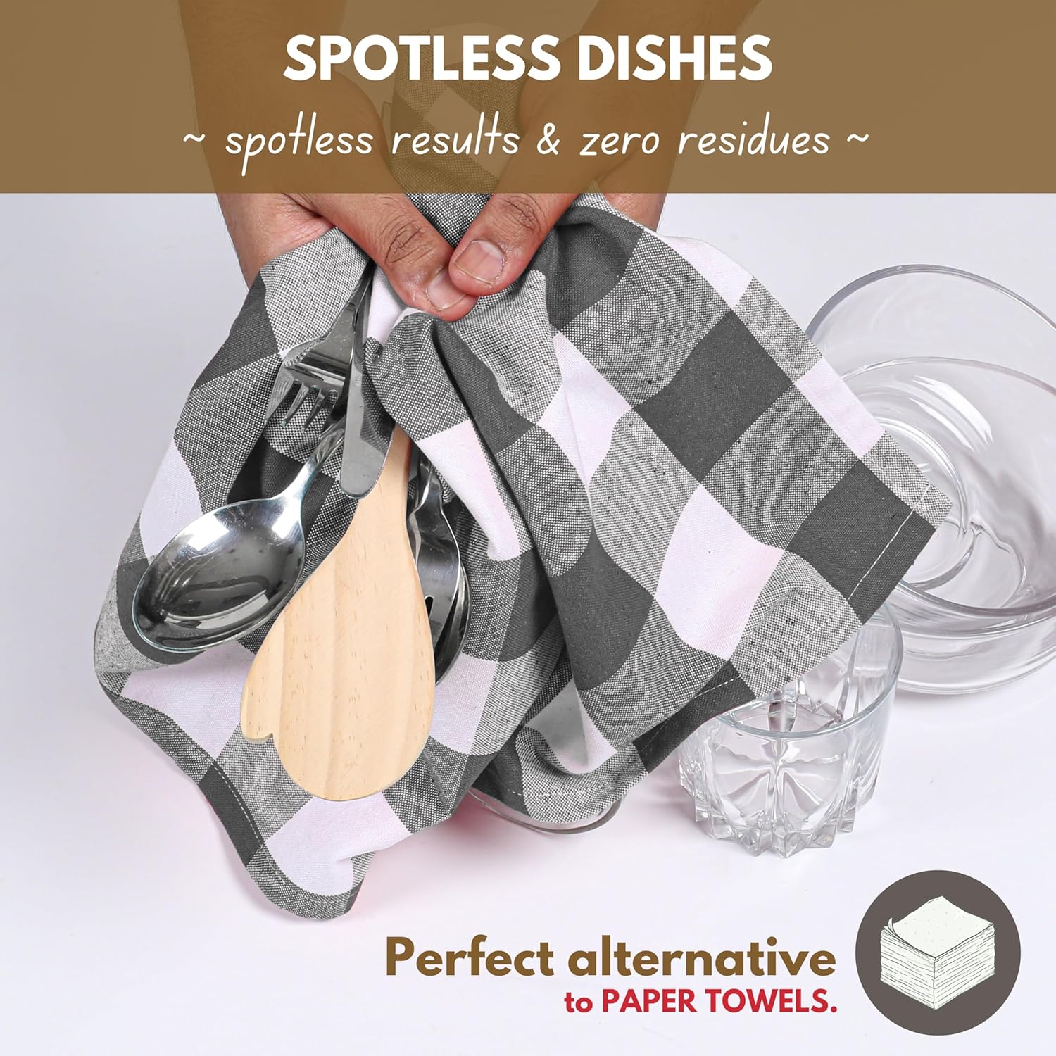- SUPER ABSORBENT: Say goodbye to spills and wet dishes! Our towels soak up water and messes in a flash, making your kitchen cleanup quick and effortless.