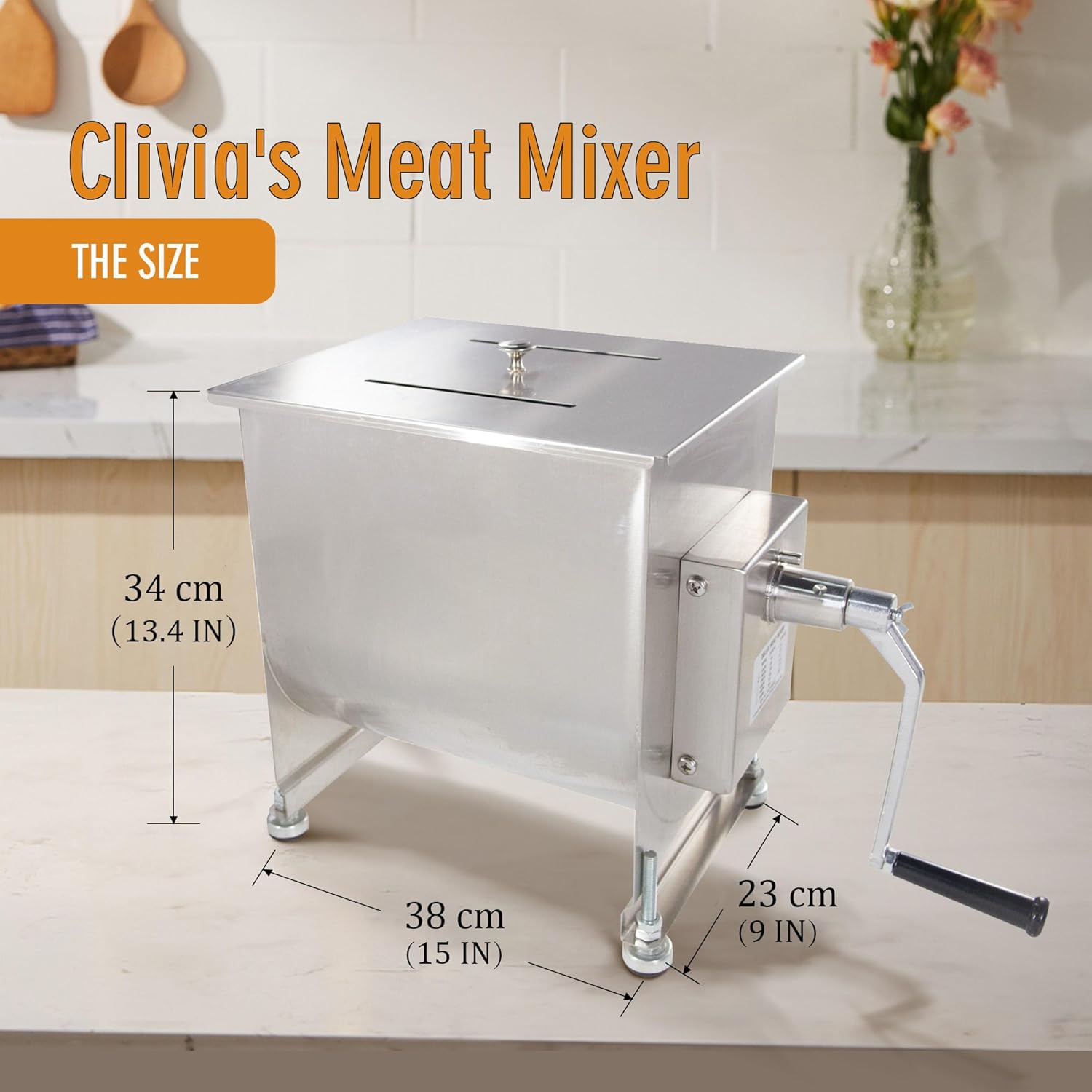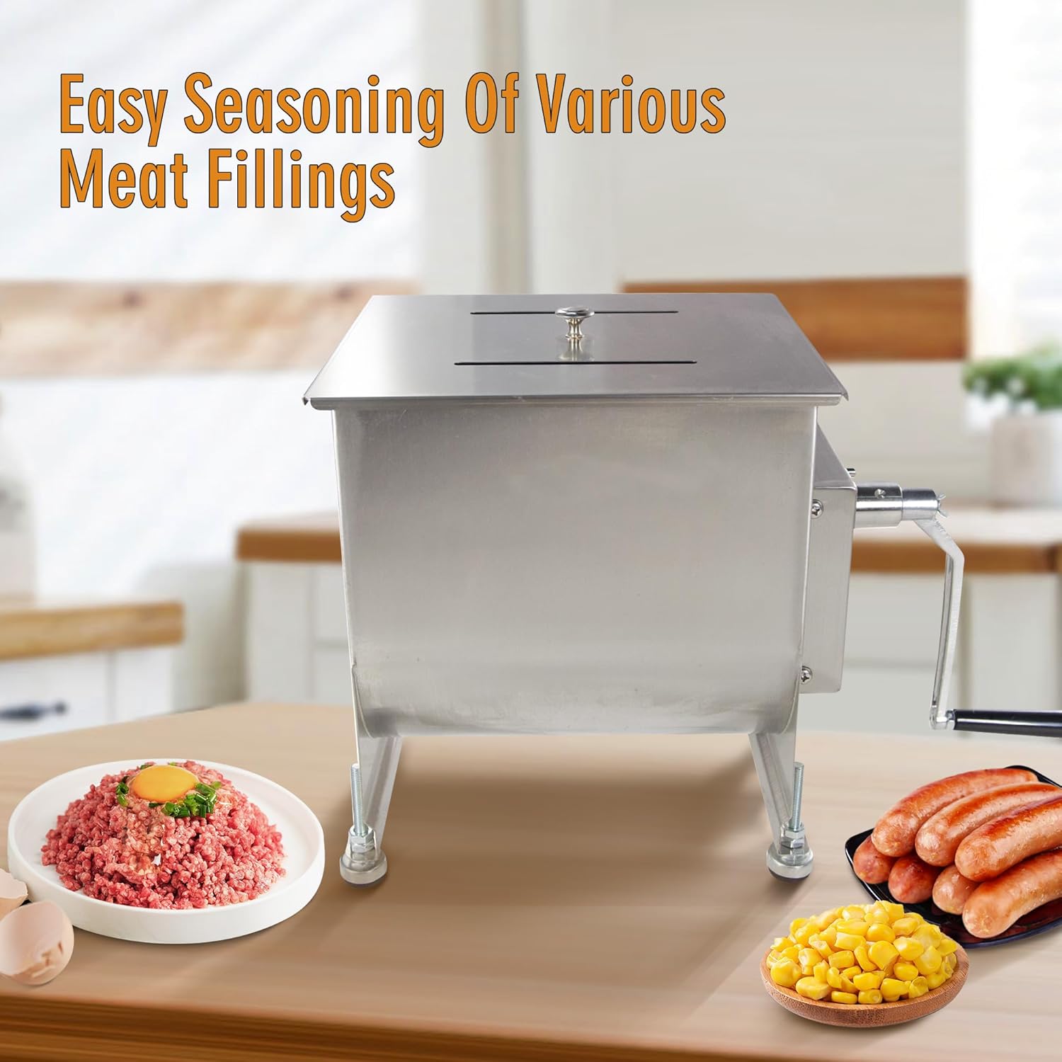CMI Commercial Stainless Steel Manual Meat Mixers with lid,20Lb/10L Fixed Tank,(Mixing Maximum 15Lb for Meat),Sausage Mixer Machine Meat Processing Equipment