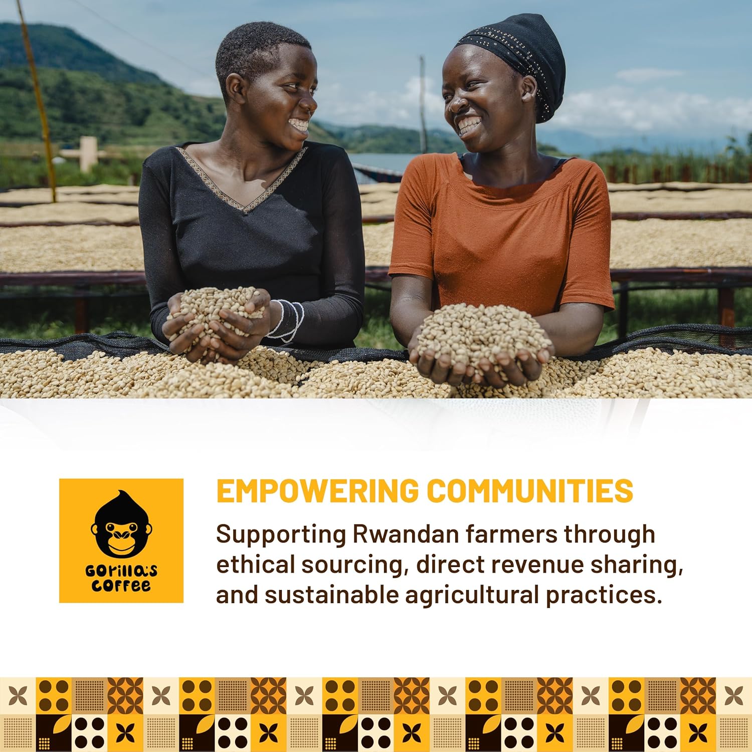 Gorilla's Coffee 100% Arabica - Medium Roast Ground Coffee, Fair Trade, Smooth, Balanced, Aromatic, Spice & Luscious Fruit Notes | Premium Rwandan Coffee | Rich, Flavorful, and Aromatic (500g/17.6oz)