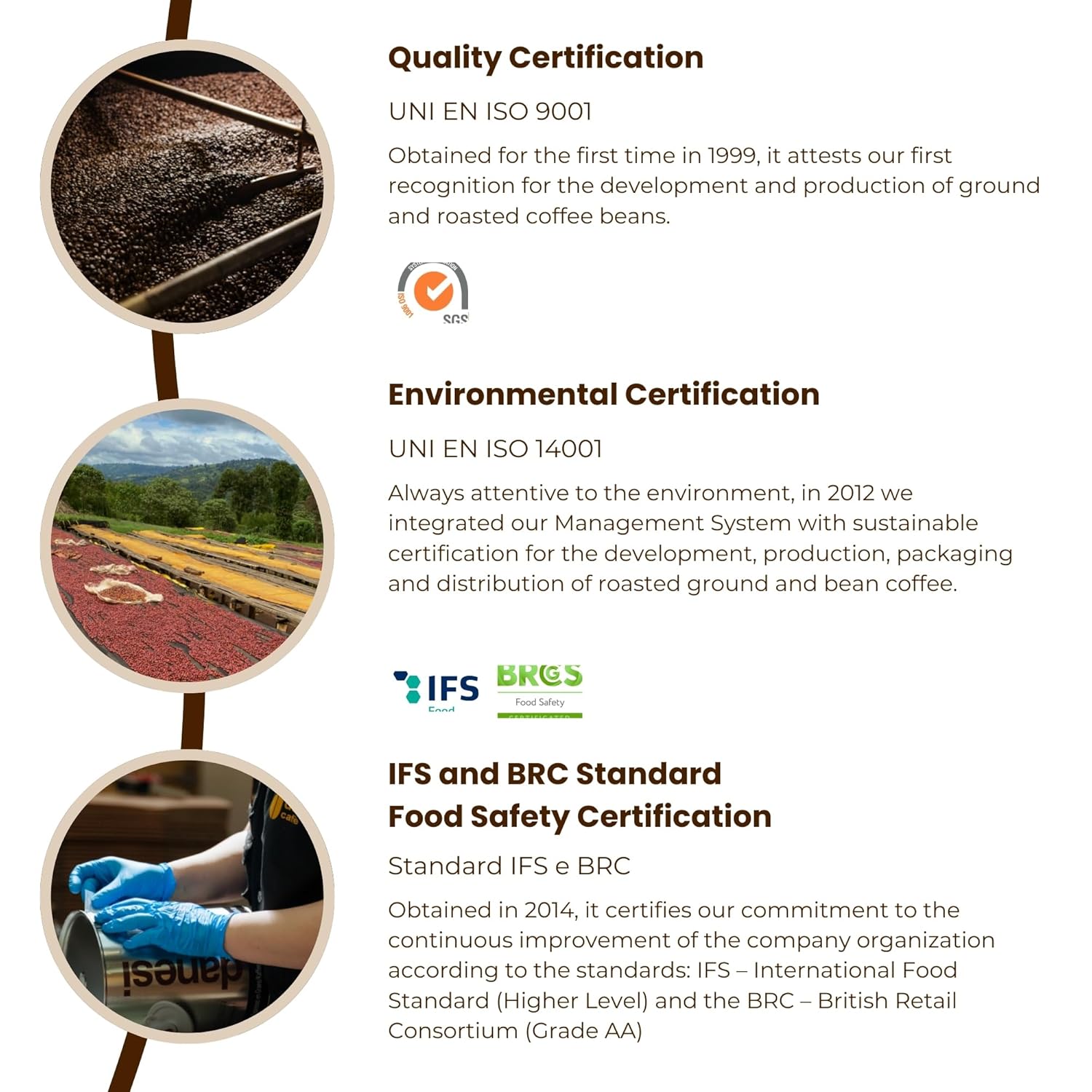 - Leading by Example: Danesi Caffe is a proud member of the ‘Consortium for Protection of Traditional Italian Espresso Coffee' and the 'International Women Coffee Association,' supporting fair wages and the development of rural women-led farms around the globe.
