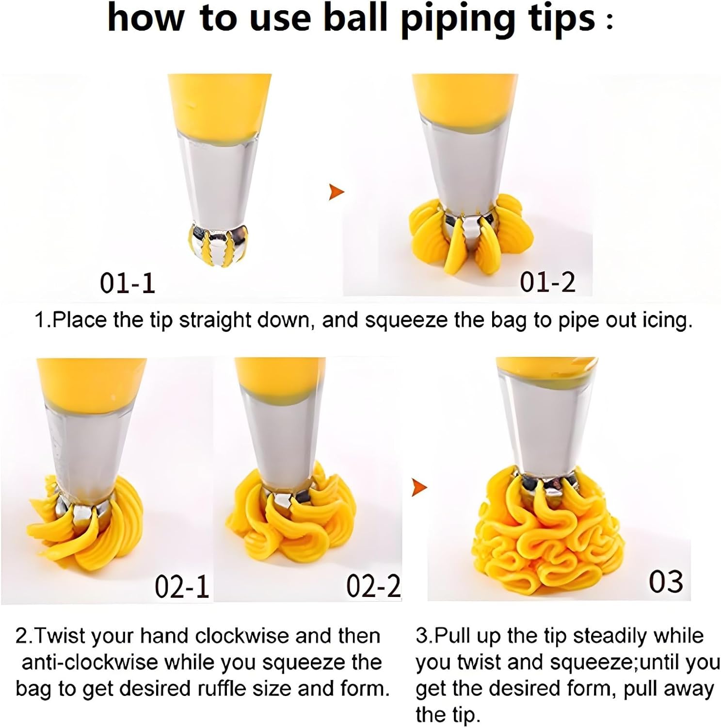 - 【7 Russian Tips,1 Ball Tip,2 Leaf Tips】Using 2 leaf tips to fill the gap between piped flowers, also use these tips to decorate your cakes make them more unique, beautiful & attractive. Create swirls, rosettes, flowers, roping, stars, leaves and other designs by these russian nozzles,ball tip and your imagination.