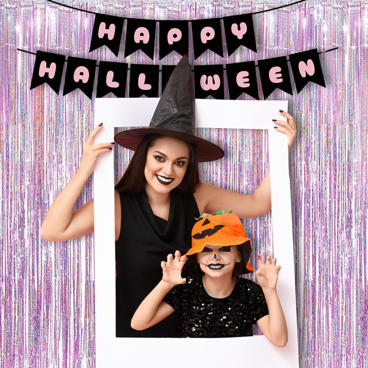 BRAVESHINE Pink Streamers Tinsel Foil Fringe Curtains - 2Pcs 3.2x8.2ft Metallic Photo Booths Backdrop for Girl/Princess/Birthday/Bridal Shower/Engagement/Bachelorette/Boo/Halloween Party Decorations