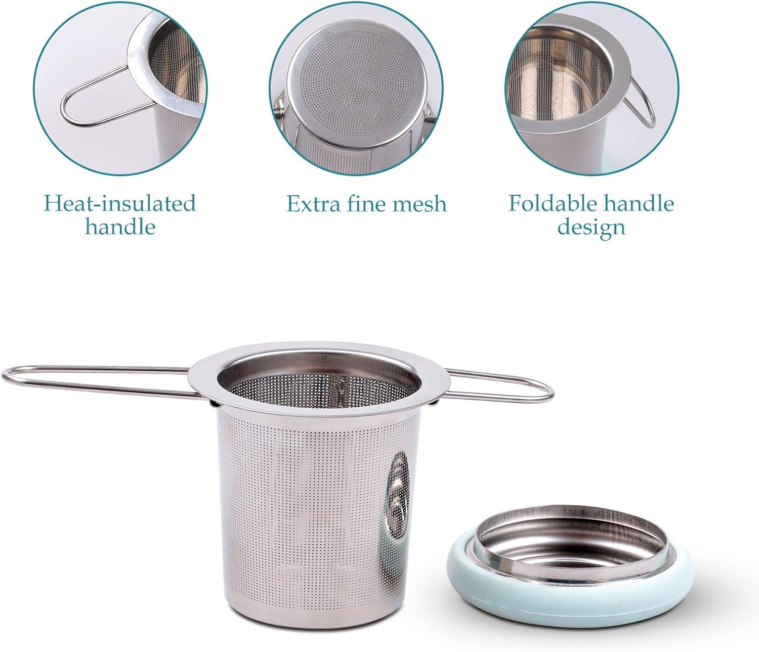- [Foldable Handle & Insulated lid] Our one cup tea infuser with a foldable handle that you can take with you as it folds neatly into your bag and the long foldable handles can prevent you from burning your fingers. The tea steeper diffuser comes with a lid, so your tea stayed hot and aromatic while it steeped. After brewing, the lid flips over to become a convenient coaster.