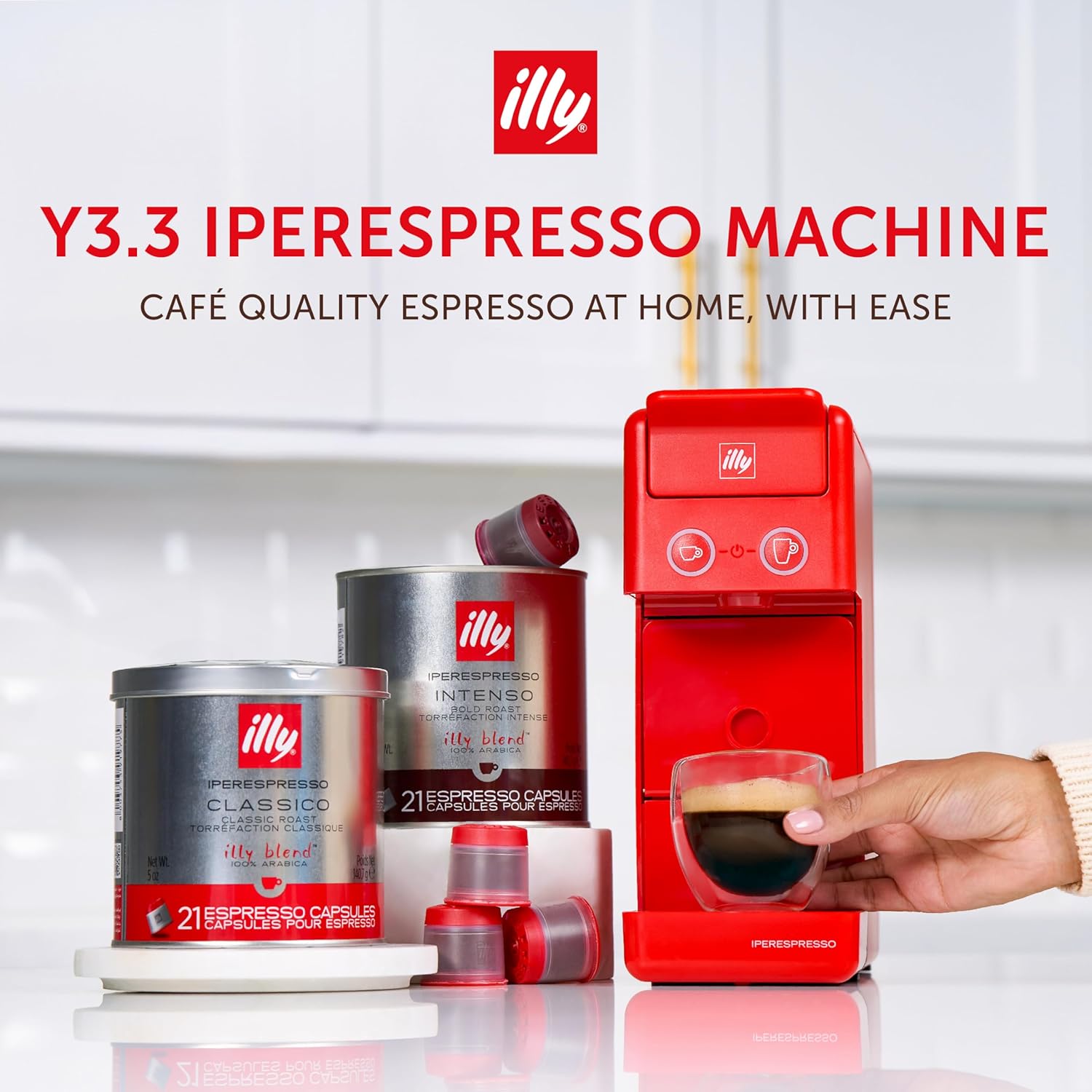 Illy Y3.3 Espresso Machine, Single Serve Coffee Machine for IperEspresso Capsules, Single Cup Espresso Maker (Red)