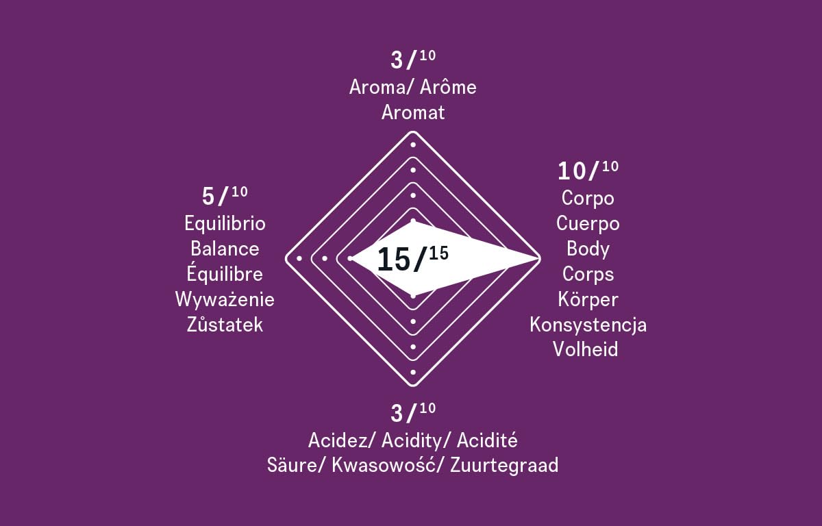 - Sensory Profile - Aroma 3/10 | Body 10/10 | Acidity 3/10 | Balance 5/10 | Intensity 15/15