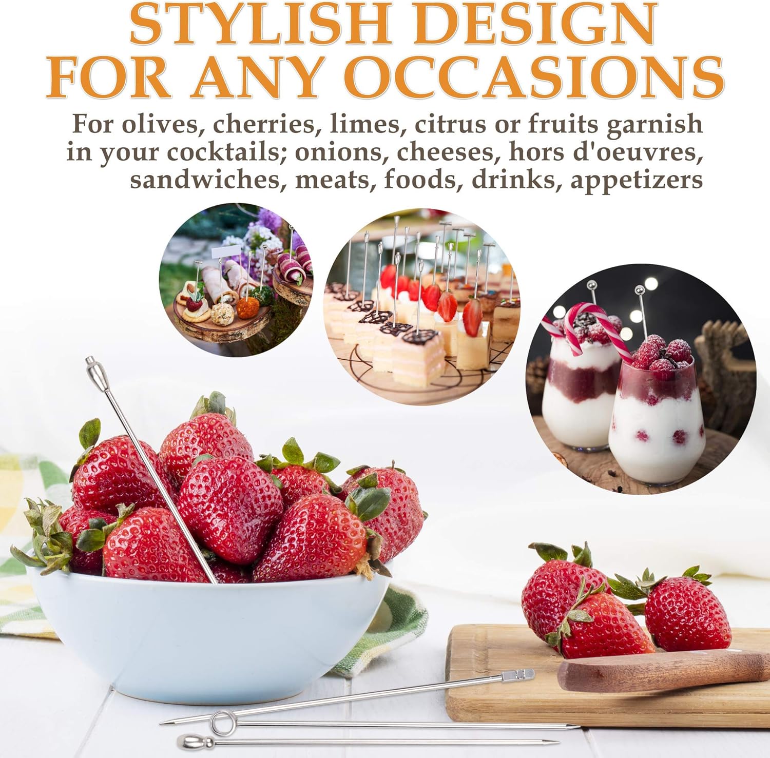 - Cocktail Picks - Exquisite High Quality: Our metal cocktail picks are made of premium stainless steel 304, sturdy, durable, rust-free or erosion-free, reusable, environmentally friendly, easy to clean. these metal toothpicks are designed to last a lifetime.