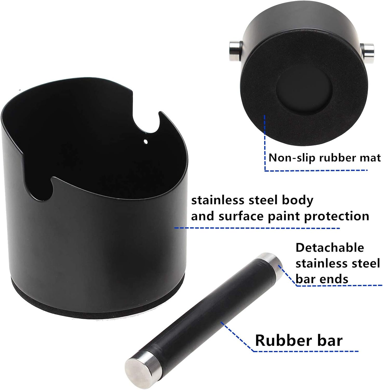 Espresso Knock Box, Stainless Steel Coffee Grounds Knock Box, With Removable Knock Bar and Non-Slip Rubber Base (Black)