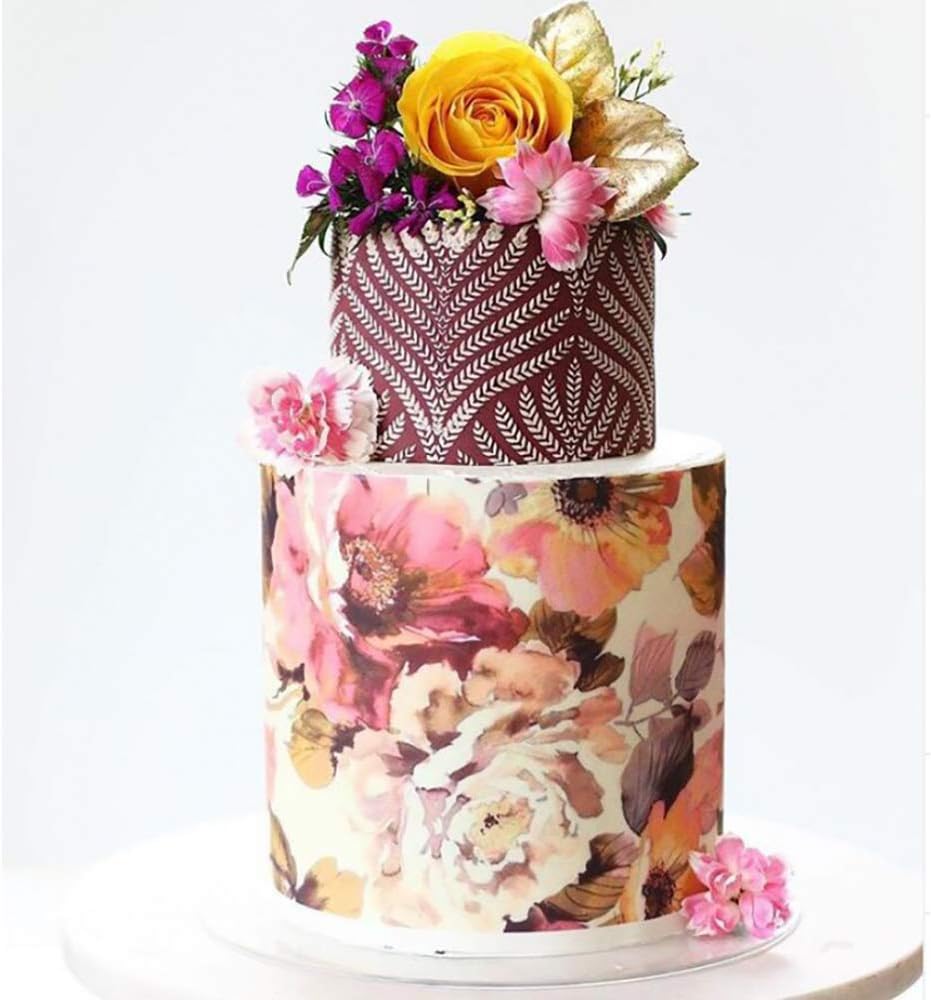 - The cake stencil works well on buttercream and is long enough to go around almost an entire 6" cake!