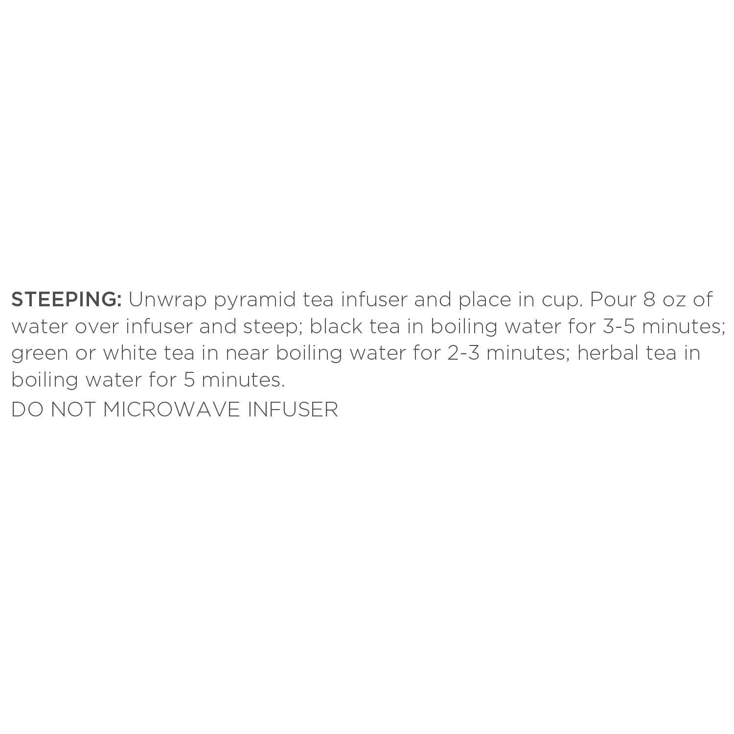 - How to - unwrap the Pyramid Infuser, steep in hot water, and reveal the exquisite nature of the whole leaf teas. Allows the tea leaves to fully unfurl in the water, resulting in a most flavorful cup of tea. Do not microwave pyramid.