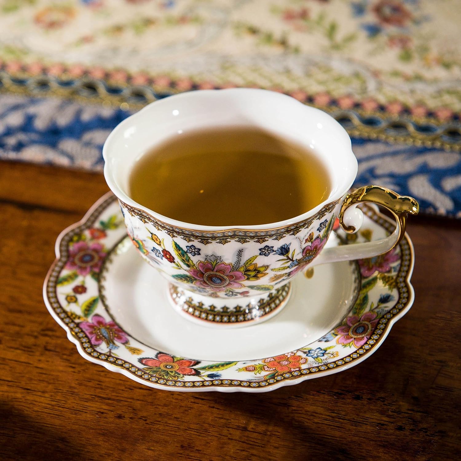 - Beautiful Floral Design: Featuring embossed flowers design, integrated with gold trim to highlight the texture, this floral tea cup with saucer adds an extra touch of class to your afternoon tea party
