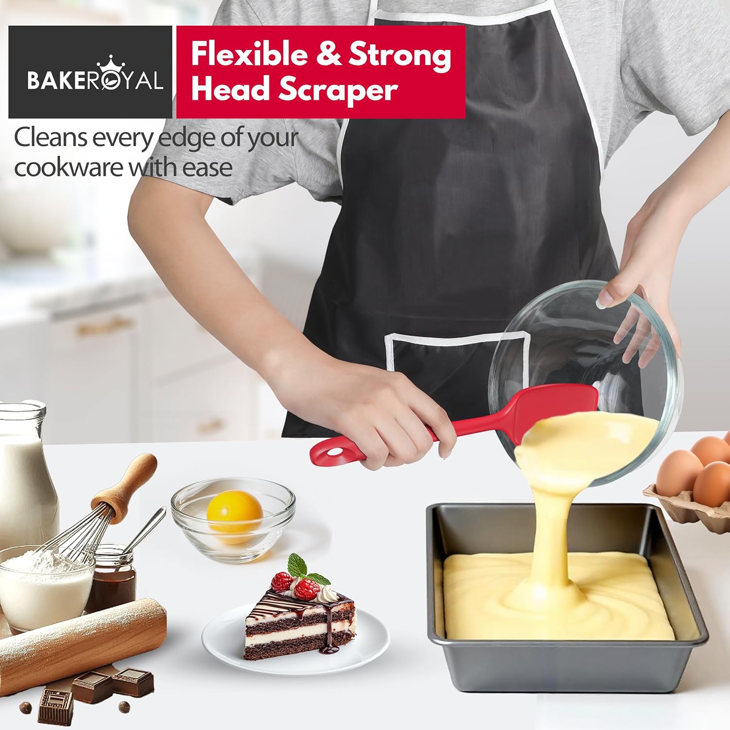 - ROYAL TASTE MAKER: This Bake Royal rubber spatula set includes Large, Mini, Spoon, and Jar are the best minimalist kitchen essentials that come with every spatula a new or experienced baker could need to whip up some delicious food. From frosting cakes, scraping batter, Heavy sticky and soft mixing, butter icing, flipping pancakes, scooping dough, to getting the last bit out of the jar done with these well-balanced, functional, and stylish tools that also add a pop of color to your kitchen.