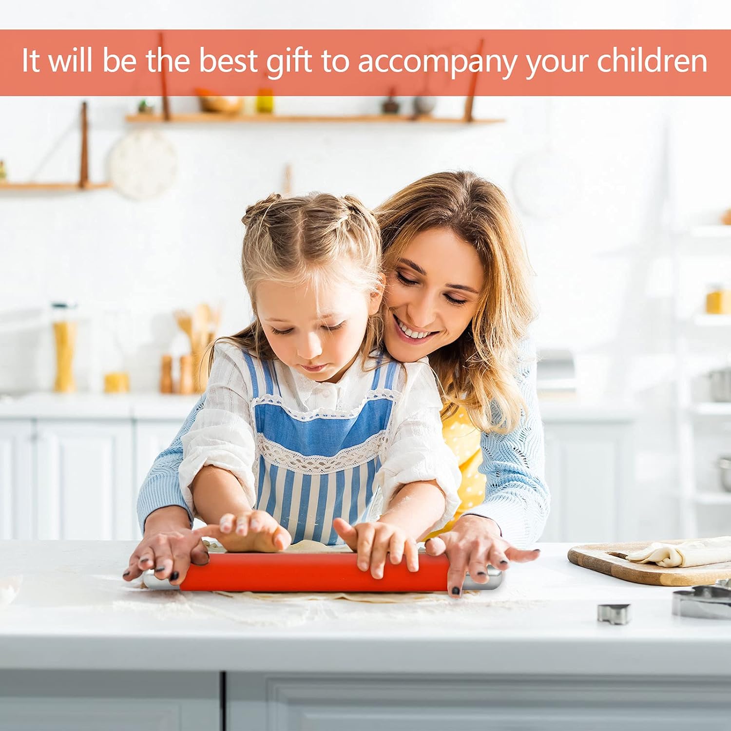 Rolling Pin Dough Roller for Baking with Thickened Non Stick Silicone Metal Handle Rolling Pin Stainless steel Fondant Roller Pin Cookie Pastry Kitchen Accessories 13.8 X 1.5 Inches