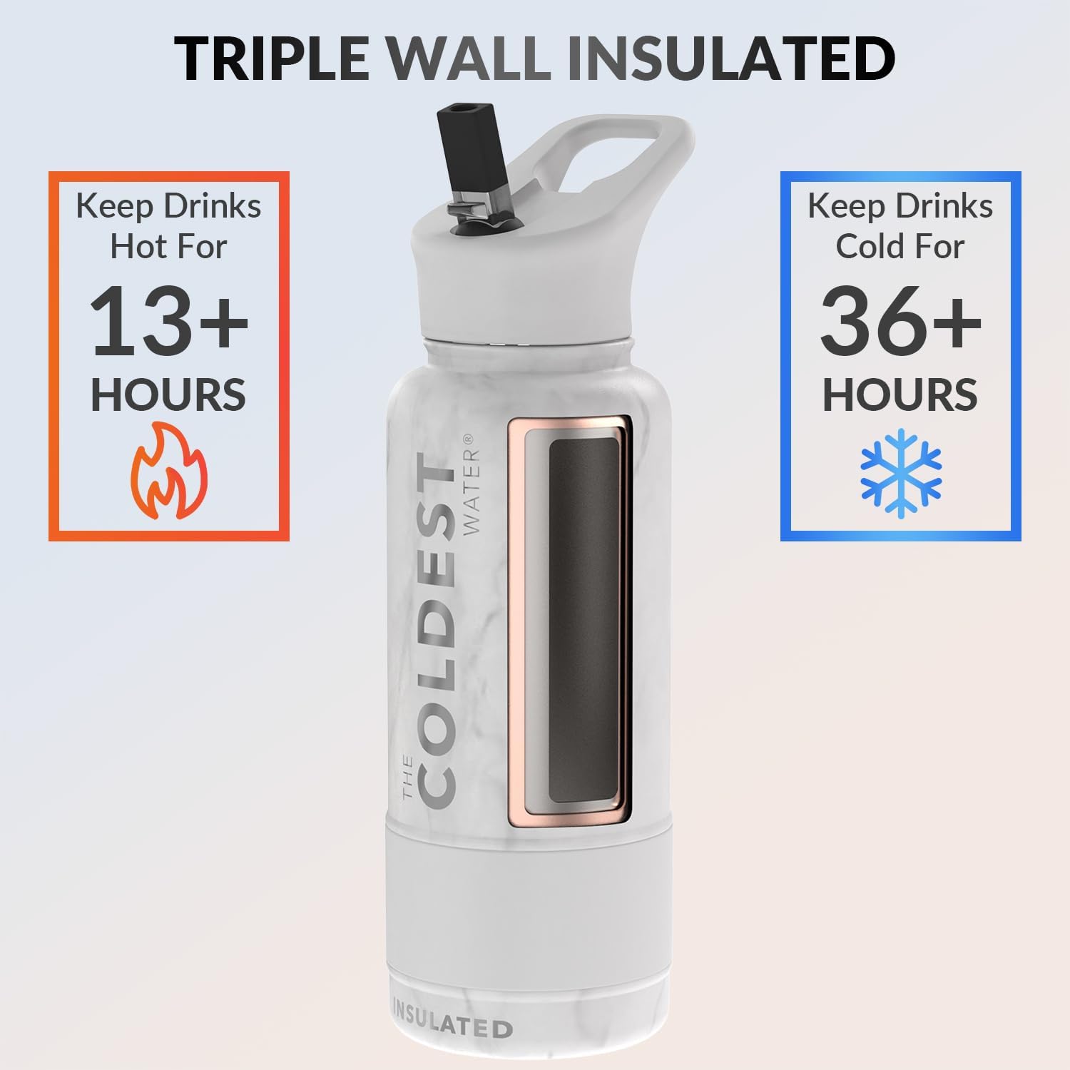 - 𝐀𝐃𝐕𝐀𝐍𝐂𝐄𝐃 𝐈𝐍𝐒𝐔𝐋𝐀𝐓𝐈𝐎𝐍 𝐓𝐄𝐂𝐇𝐍𝐎𝐋𝐎𝐆𝐘: Coldest reusable water bottles are your solution to tepid sips. With the world's first fully insulated straw lid, this bottle keeps your drink cold for 36+ hours and hot for 13+ hours, ensuring your drink stays at the perfect temperature throughout the day. Cold-tested against 50+ leading brands, its superior performance guarantees an unmatched experience. Upgrade now to the Coldest Water Bottle and bid farewell to temperature woes.