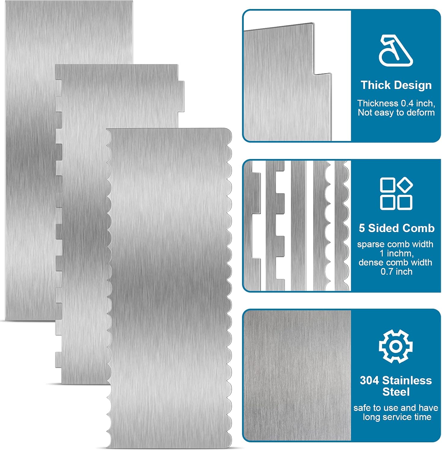 - Sturdy and durable to use: our cake scraper is made of stainless steel material, non-toxic and odorless, thick, durable and safe to use, easy to clean, reliable material can serve you for a long term