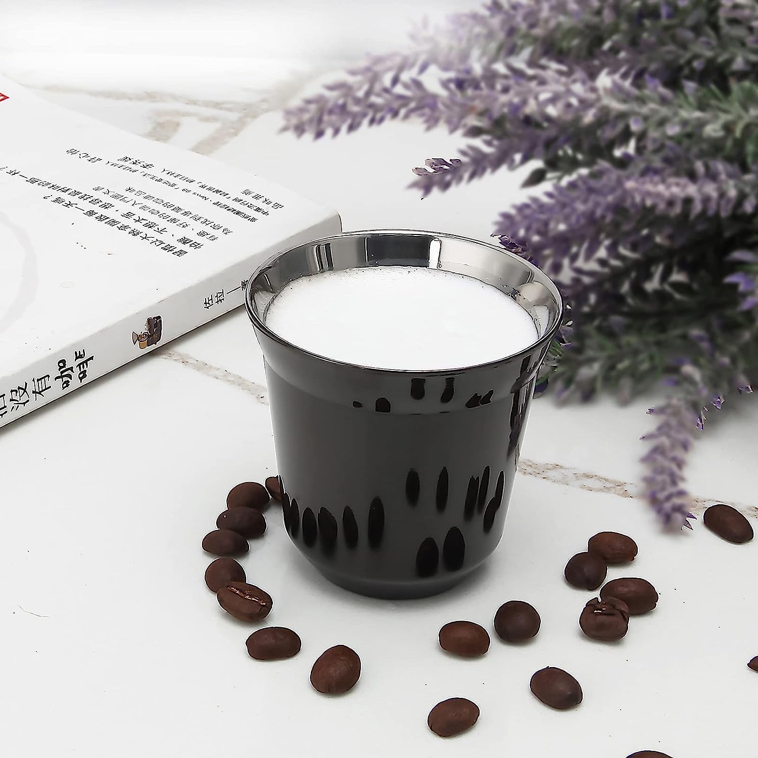 Easyworkz Stainless Steel Espresso Cup 2pcs Set Double Wall Insulated Metal Demitasse Cups (Black, 5 oz)
