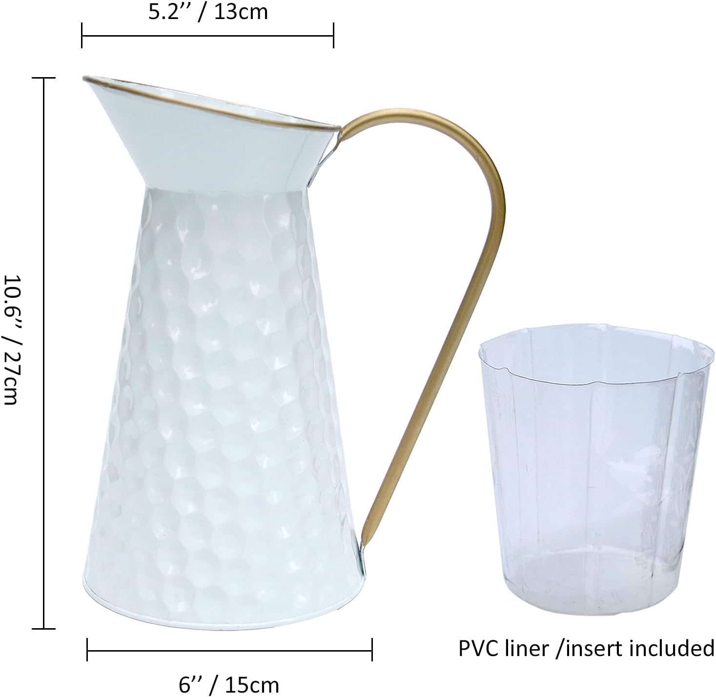 Elegant White Metal Decorative Flower Vase,Farmhouse Galvanized Pitcher,Rustic Milk Jug for Home Decor…