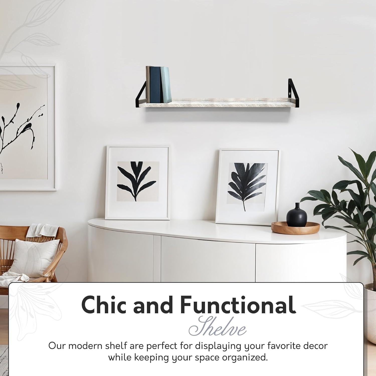 - RUSTIC MEETS MODERN: The industrial brackets and sleek design make this white floating shelf a perfect fit for minimalist, farmhouse, or modern home decor themes.