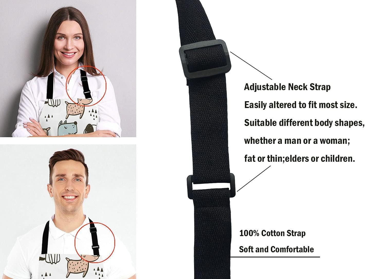 - Adjustable neck strap with black ties,The adjustable Neck strap design, It can be adjusted quickly for people of different heights, making it easier to wear.