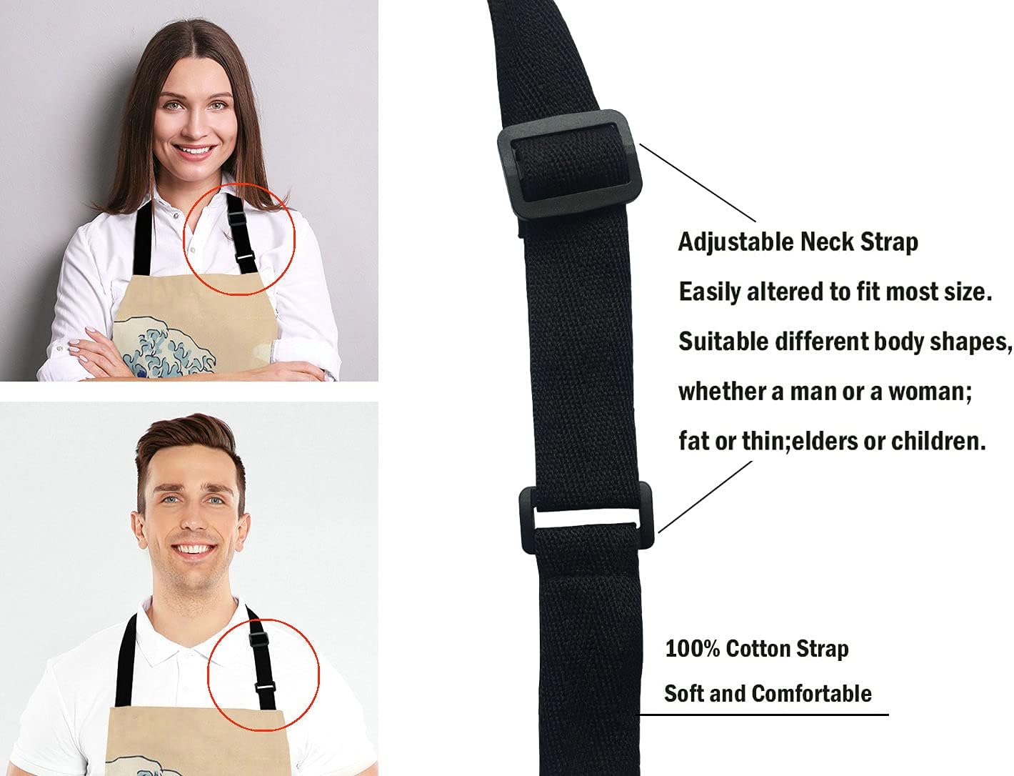 Hokusai The Great Wave Bib Apron with Adjustable Neck for Men Women,Suitable for Home Kitchen Cooking Waitress Chef Grill Bistro Baking Apron