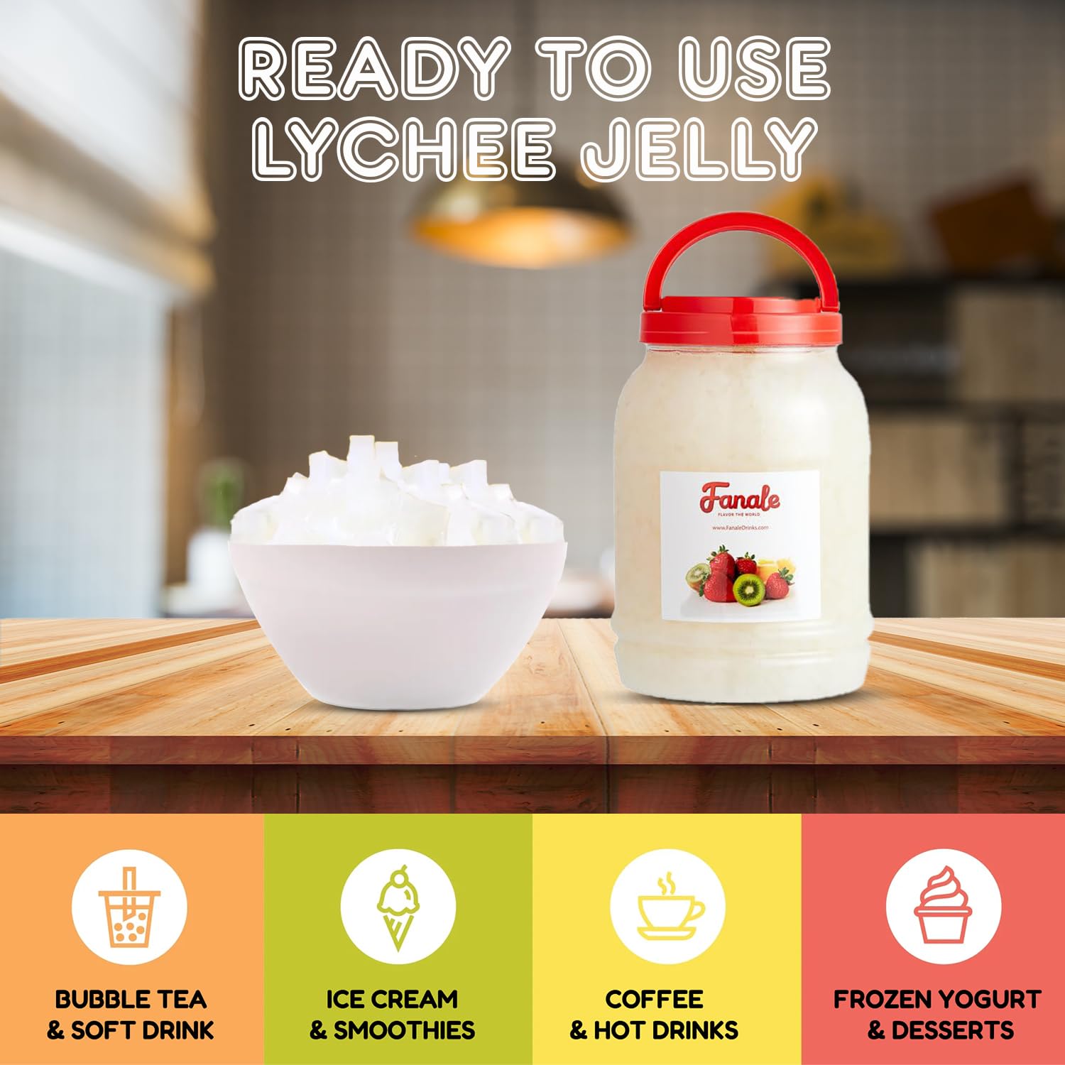 Fanale Coconut Jelly Topping nata de coco for Bubble Tea 8.3 lb | Lychee Jelly | for Boba Tea, Smoothies, Slushes, Desserts | 8.3lb | JEL005