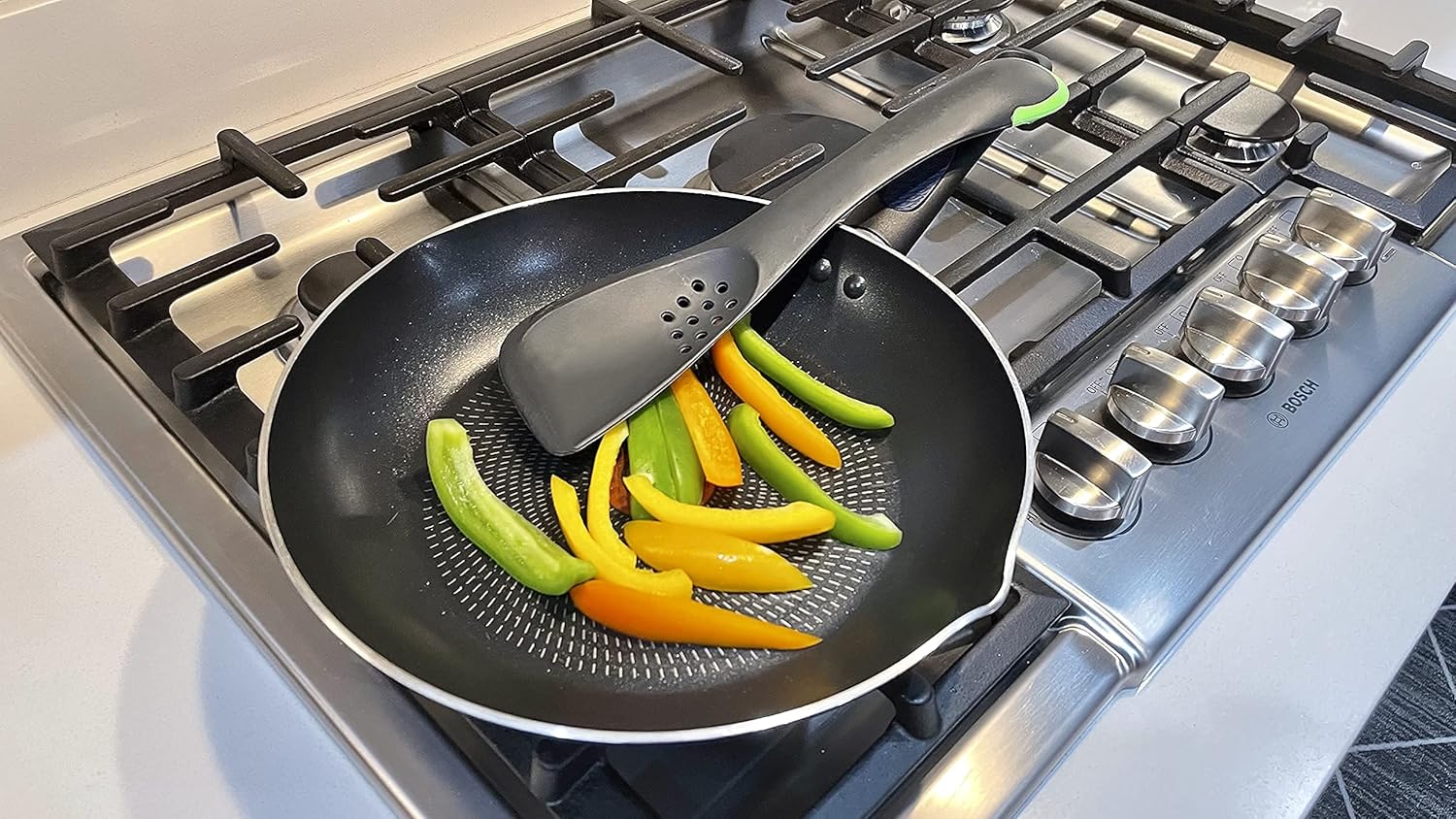 - Durable and lightweight: made of nylon and silicone, the non-stick kitchen spatulas are sturdy, heat-resistant and dishwasher safe. The 5-in-1 kitchen utensil includes a slotted and solid spoon, spatula, turner and slicer.