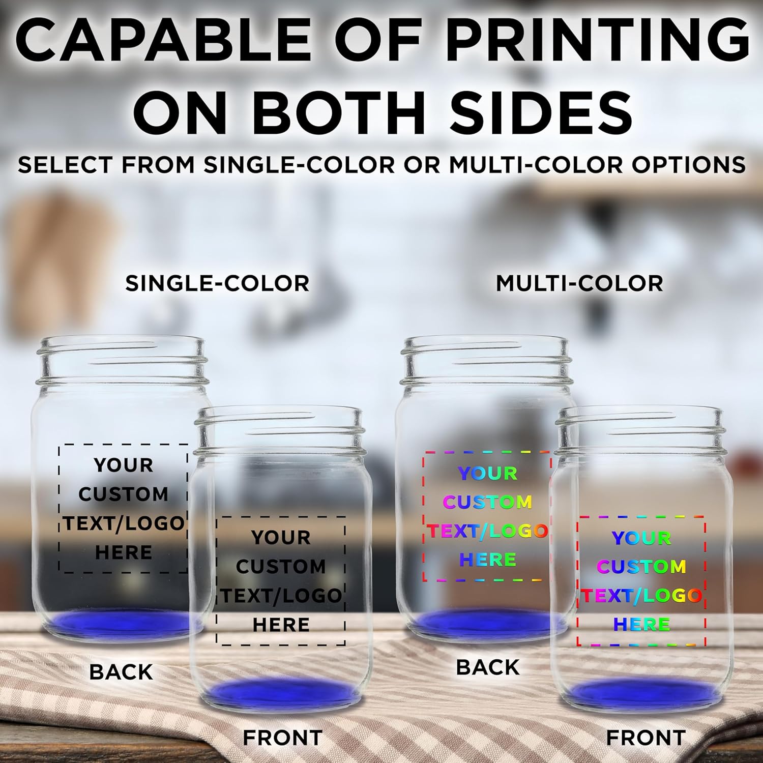 DISCOUNT PROMOS Custom Decorating Mason Jars 12 oz. Set of 100, Personalized Bulk Pack - Glass Jars for Overnight Oats, Candies, Fruits, Pickles, Spices, Beverages - Blue