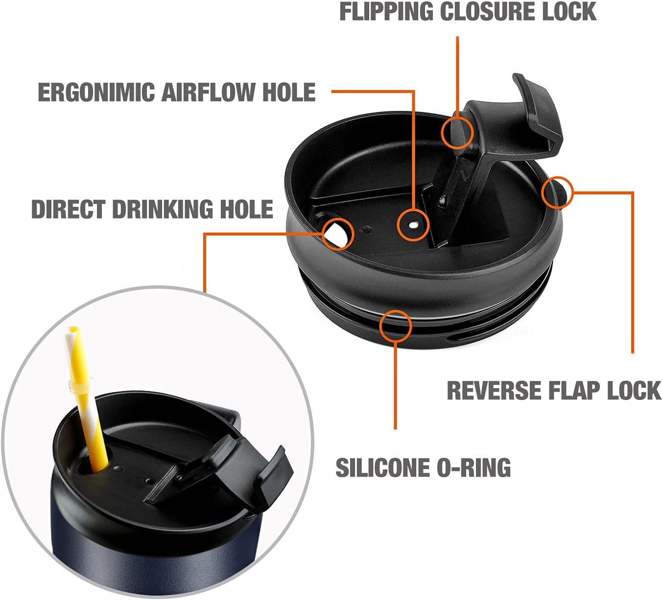 - Leak-proof: The flip cap not only provides a high water flow but also enables you to sip your drink without random splatters and spills. Plus, the lid ensures that your water stays locked inside the bottle and lets you enjoy leak-free portability