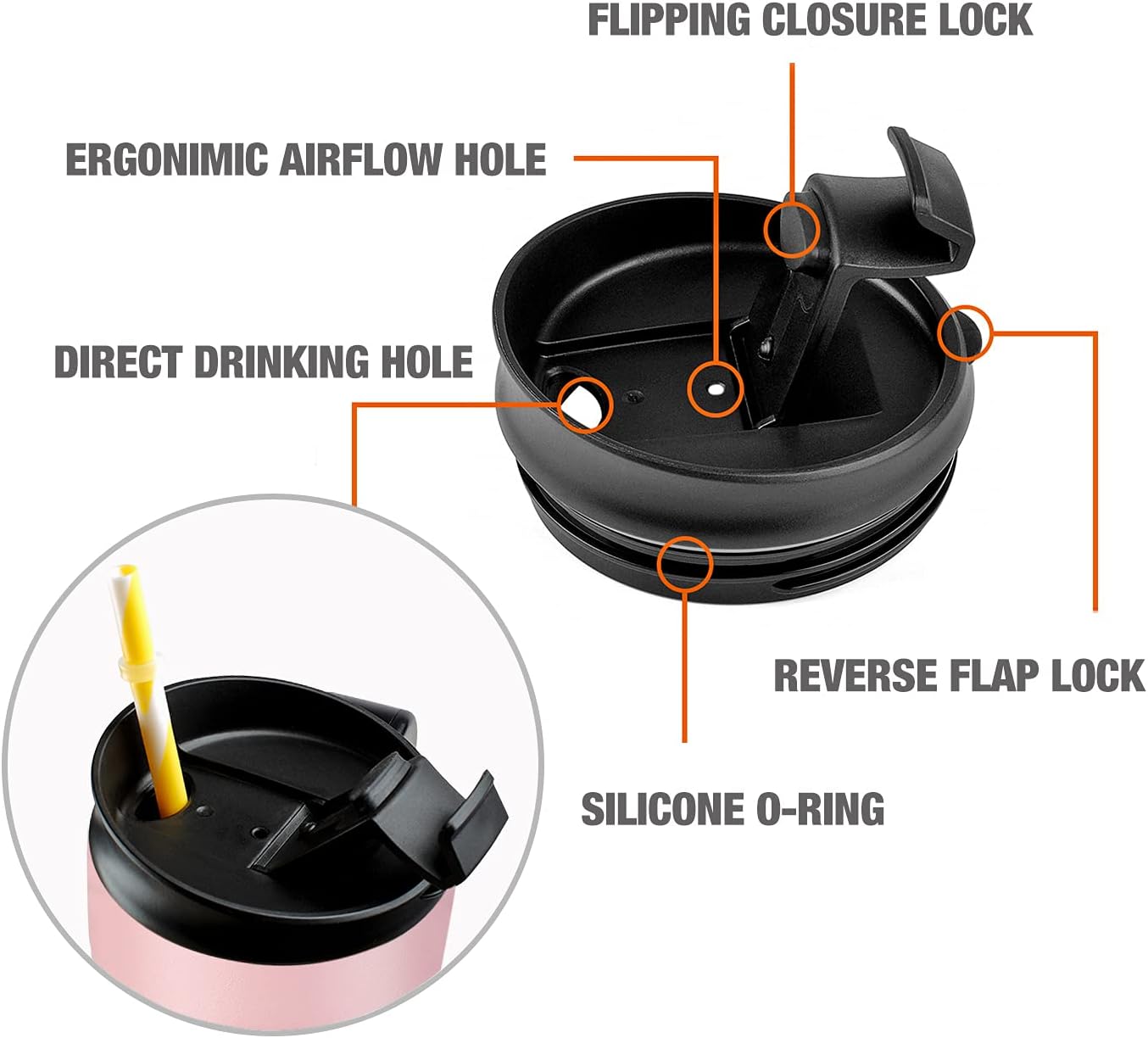 - Leak-proof: The flip cap not only provides a high water flow but also enables you to sip your drink without random splatters and spills. Plus, the lid ensures that your water stays locked inside the bottle and lets you enjoy leak-free portability