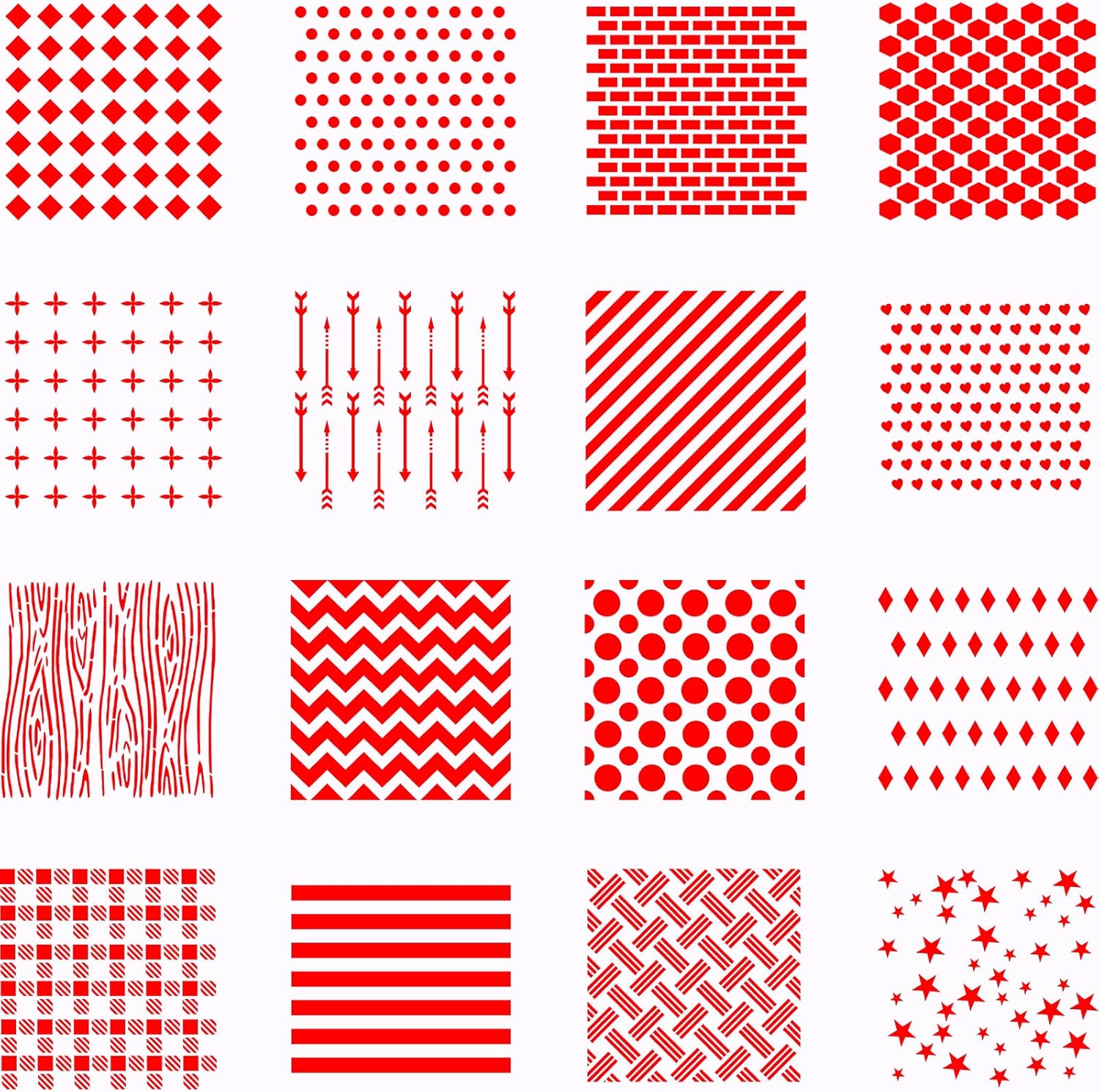 - Package include 16 Pieces Cookie Essential Stencils, such as Buffalo Plaid,Arrow,Polka Dot,Wood Grain,etc, can meet your biscuit cake & cookies decoration needs.
