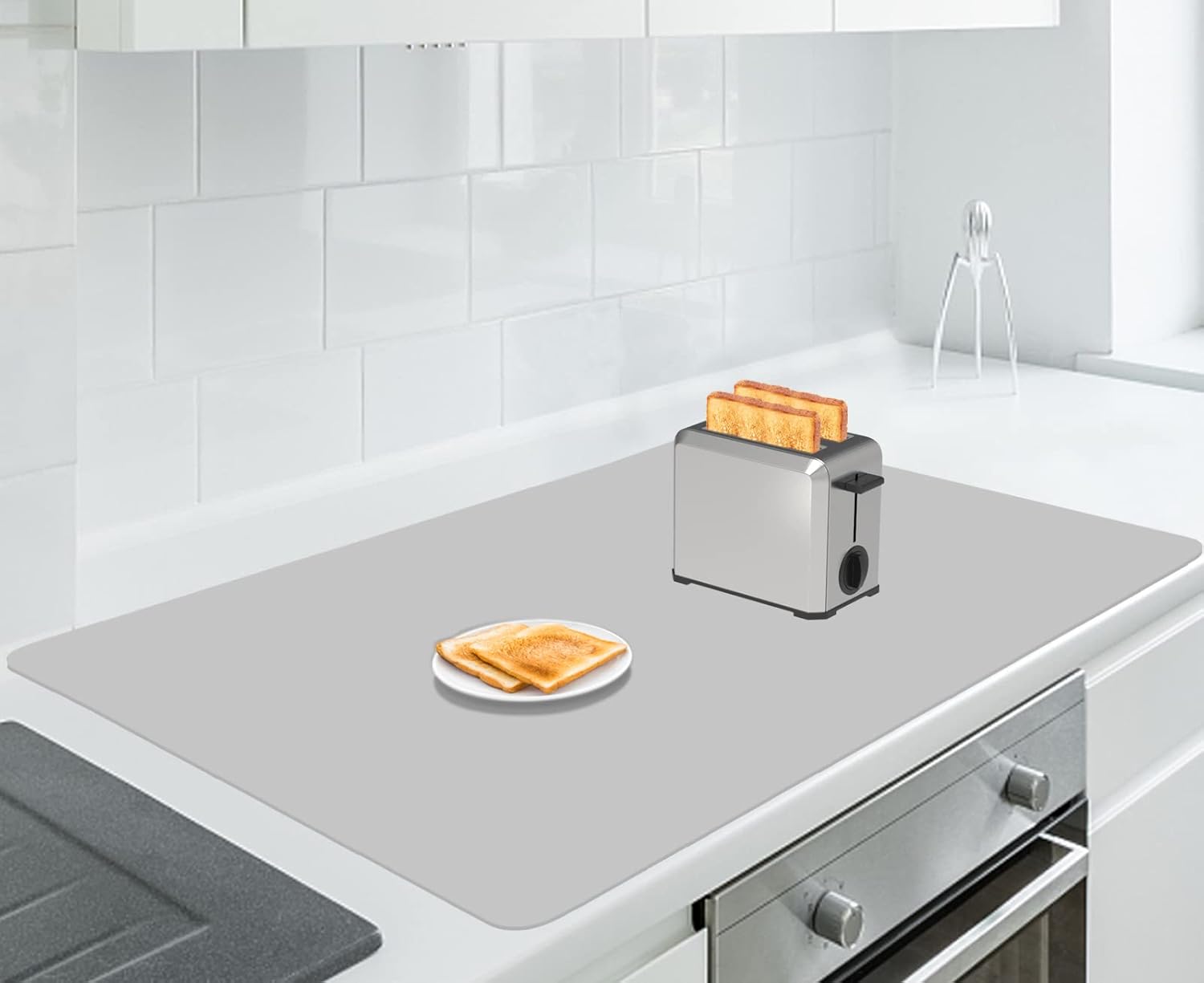 - 【HEALTHY, FOOD GRADE】: The kitchen counter protector is made of food grade silicone which can directly contact food. Safe, odorless, kid and baby use friendly. It is environmental and reusable. Heat resistant between -40°F to 482°F. Protect countertops against the heat of kitchen appliances like microwave, toaster, air fryer and oven, and reduce the noise from vibration while the appliance is in use.