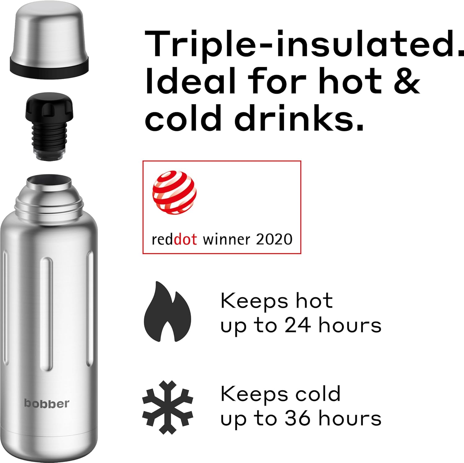 - PREMIUM THERMO FLASK: Enjoy your favorite hot drinks for up to 24 hours and keep cold beverages icy for up to 36 hours. The triple-wall vacuum insulation and high-quality insulated layer maintain optimal temperatures, making it perfect for coffee, tea, and more