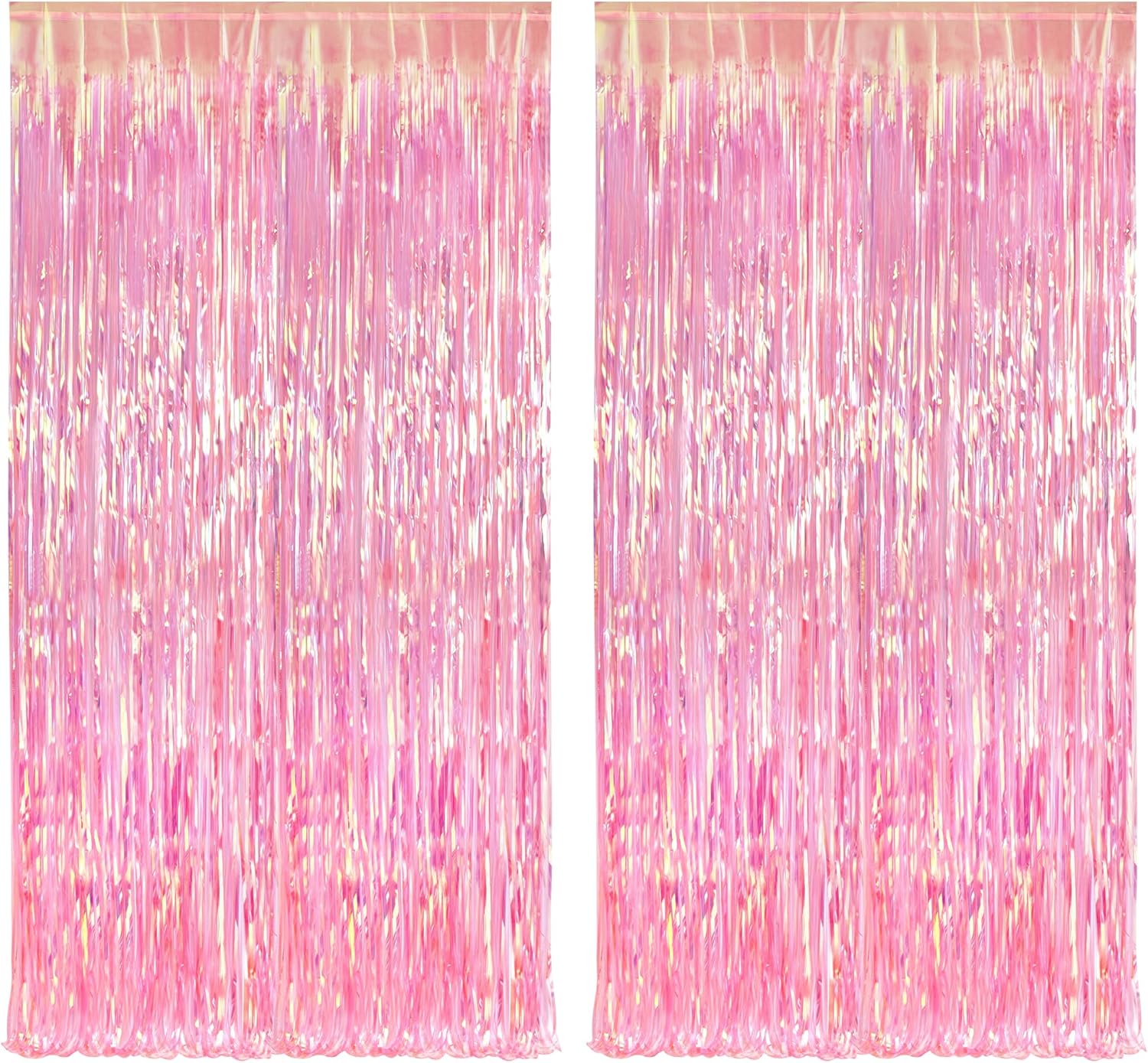 BRAVESHINE Clear Pink Streamers Party Decorations Iridescent Foil Fringe Backdrop - 2 Pack 3.2 x 6.5 ft Holographic Tinsel Curtain Party Photo Backdrop for Valentine’s Girl Birthdays Engagement Decor
