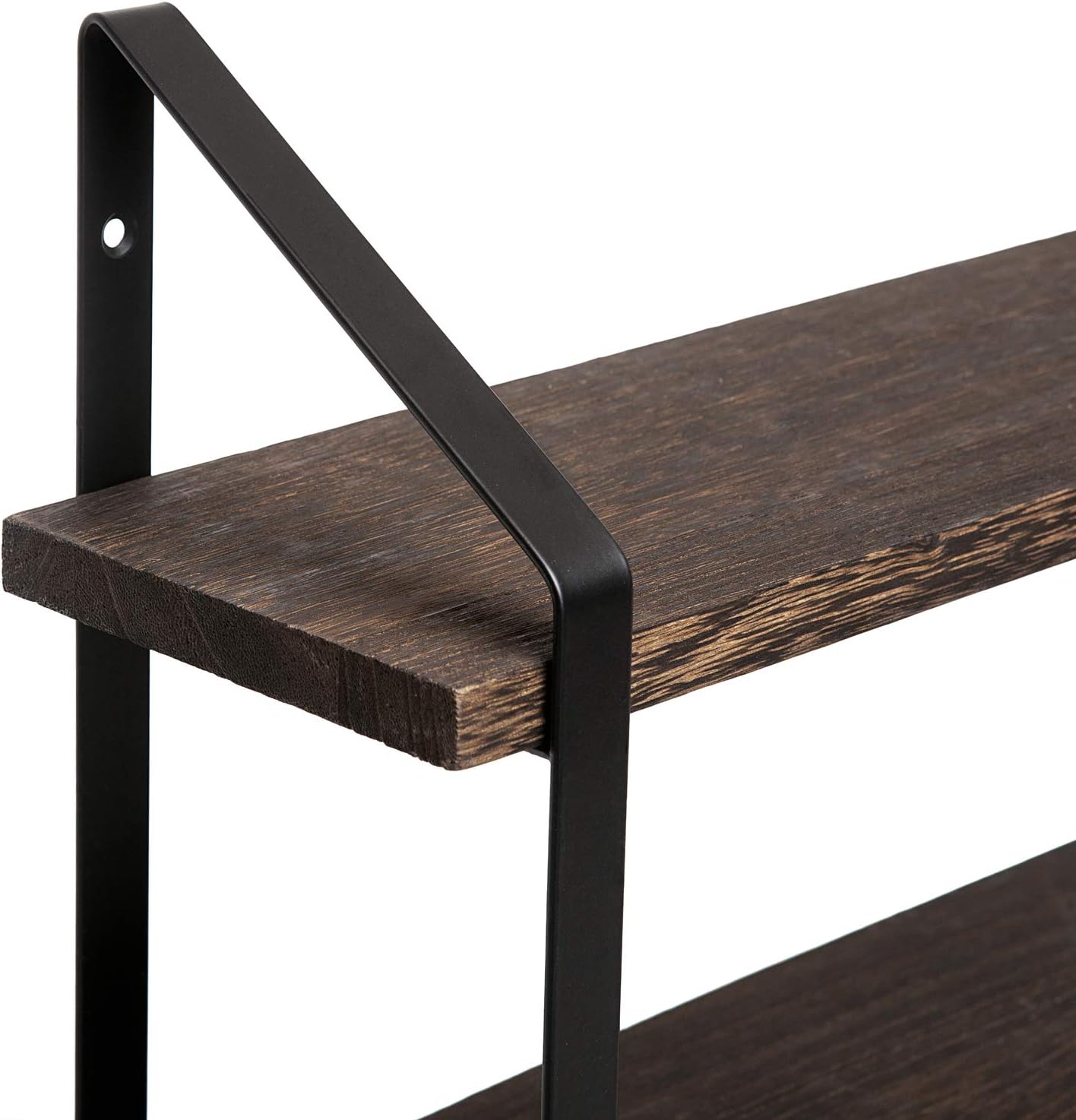 - DURABLE & STYLISH. Features rustic style with paulownia wood and industrial metal brackets, compact 3 tier design, decorative and great addition or accent to any room. Enhance décor and fill in empty wall space above a desk, above toilet, fireplace, entryway, laundry and more