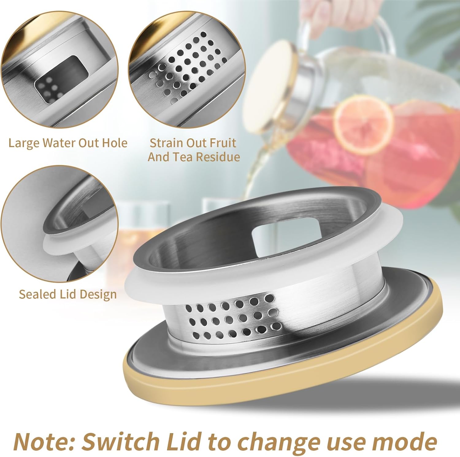 - Two Different Pour Functions: The iced tea pitcher comes with premium 304 stainless steel lid that has 2 different pour functions, one with tiny holes to act like a strainer to keep ice or fruits inside pitcher when pouring and 180 degree turn of the cap provides a “wider” mouth. The lid also has a silicone ring that improves sealing performance and reduces leaks or spills.