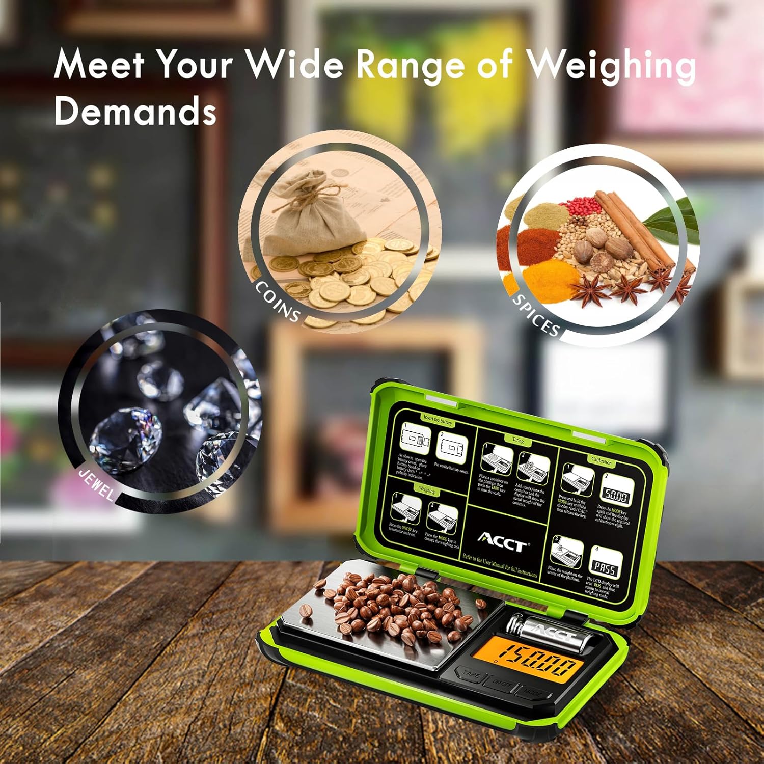 - Precise Measurement: ACCT digital pocket scale built with high precision sensor system, provides you with instant and accurate results from 0.01 g to 200 g; The error is within 0.005 grams, it is sensitive enough and comes with a 50g calibration weight;