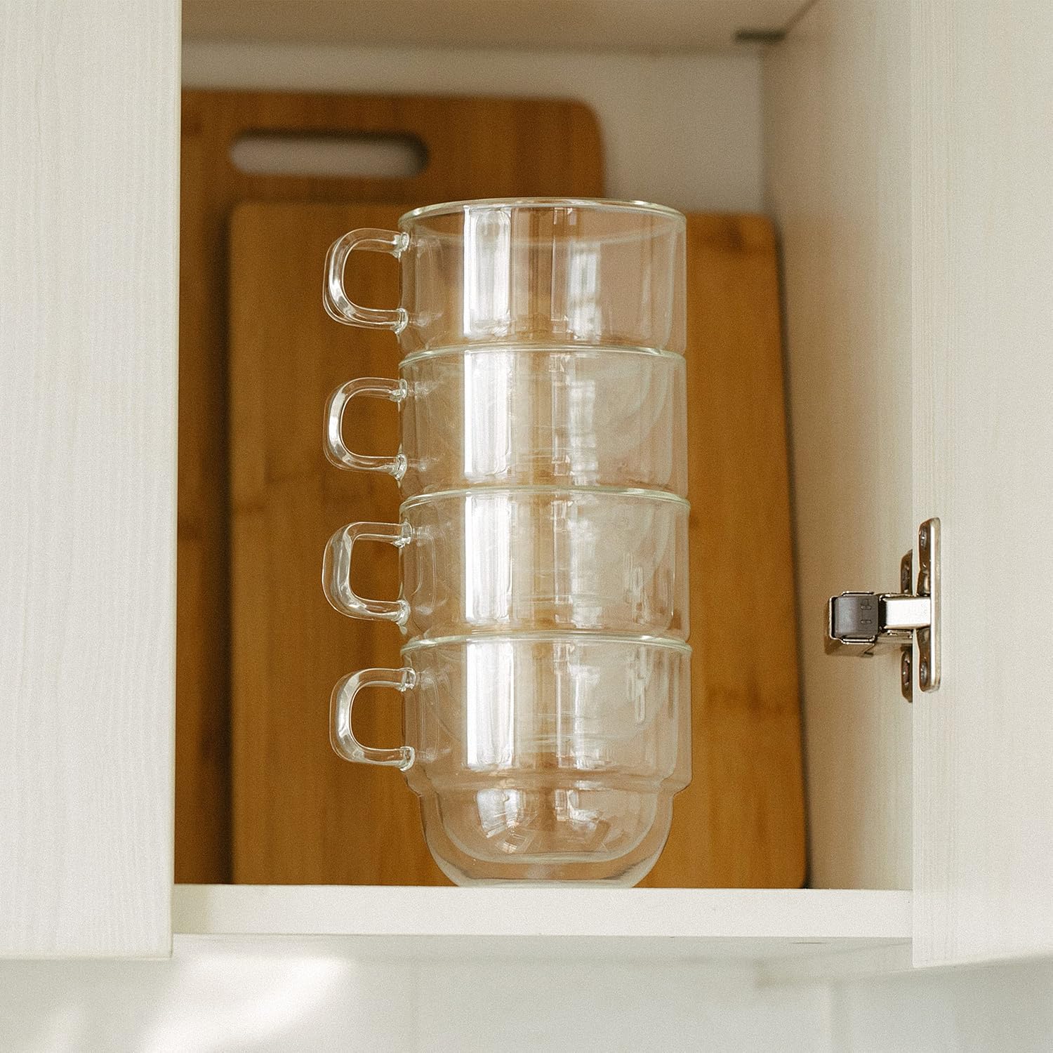 BTaT- Stackable Insulated Coffee Mugs, 4 Pack 12 oz(350 ml), Ideal for Hot and Cold Drinks, Stackable Cappuccino Cups, Double Wall Glass Coffee Cups, Tea Cups, Latte Cups, Latte Mug